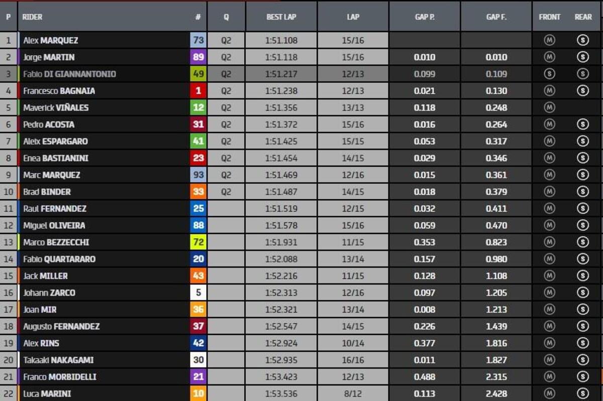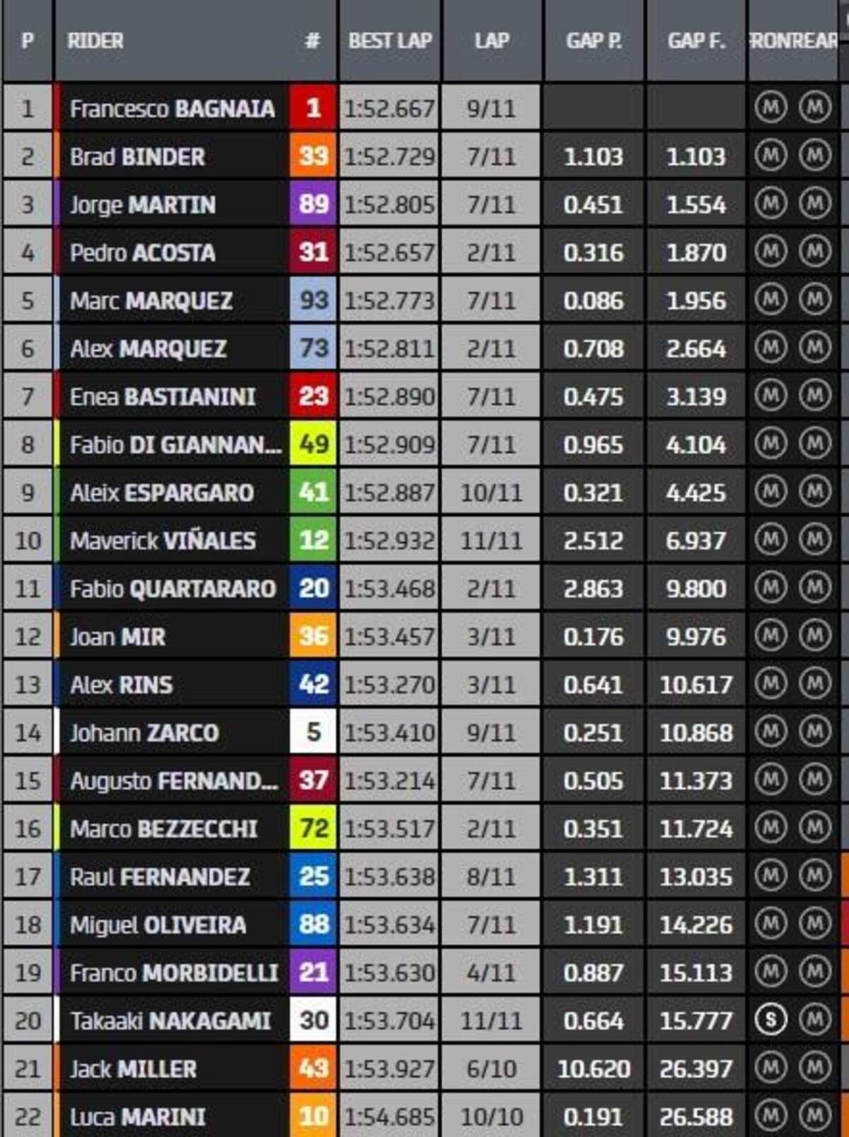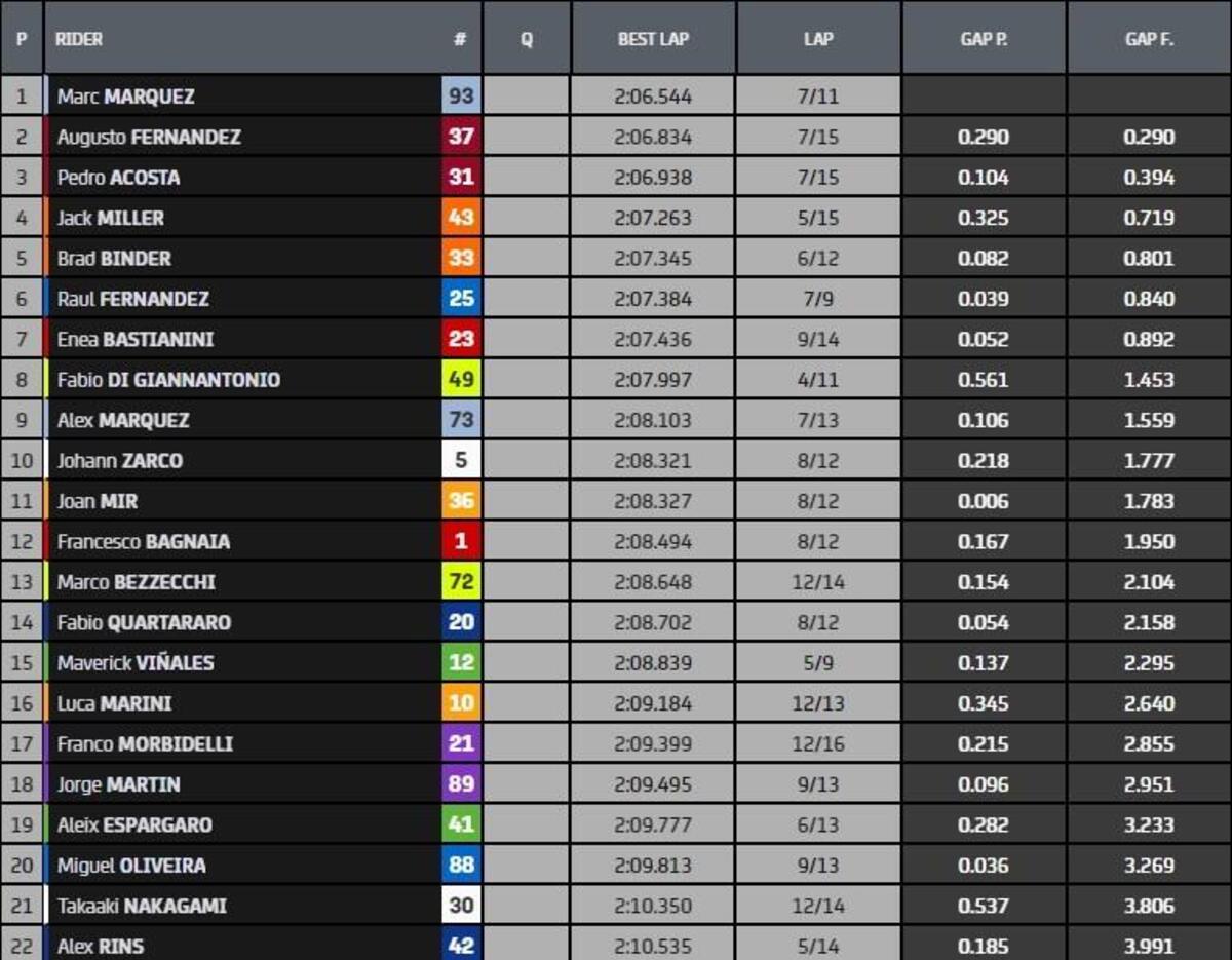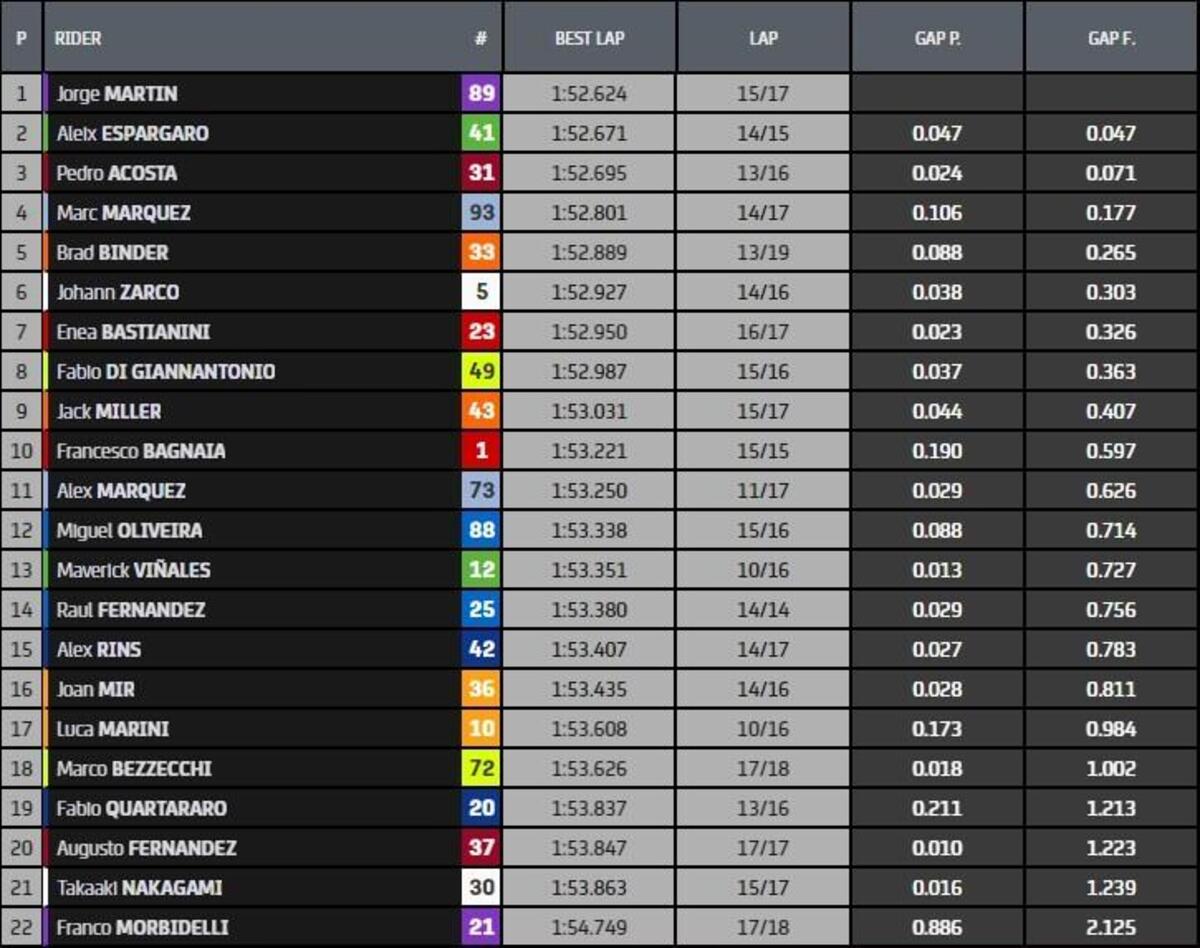 Bagnaia, Martin e Bez poi Quartararo, Marc Marquez e Acosta!
