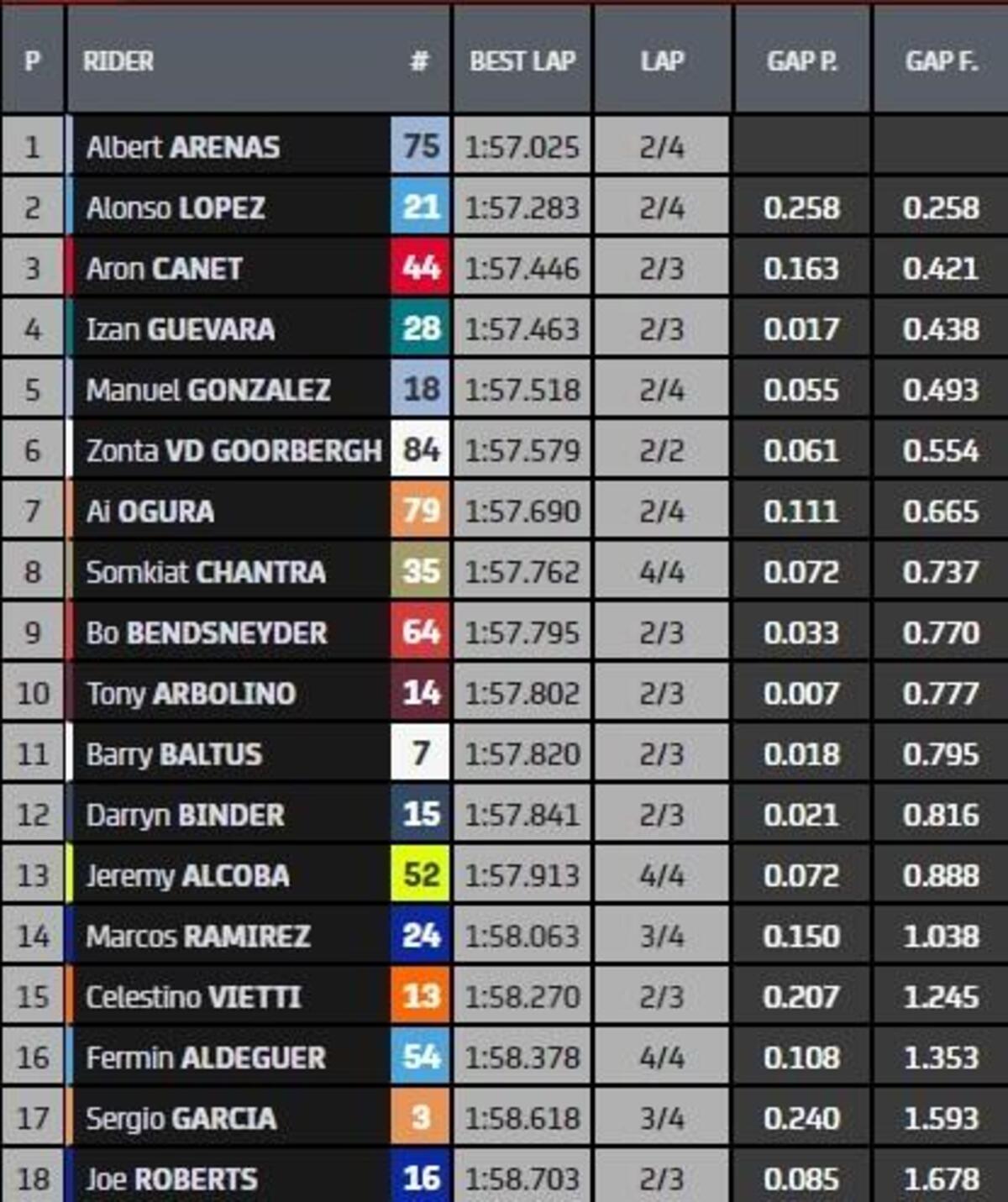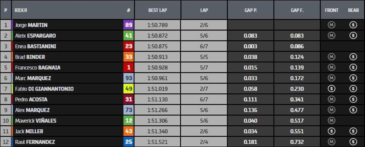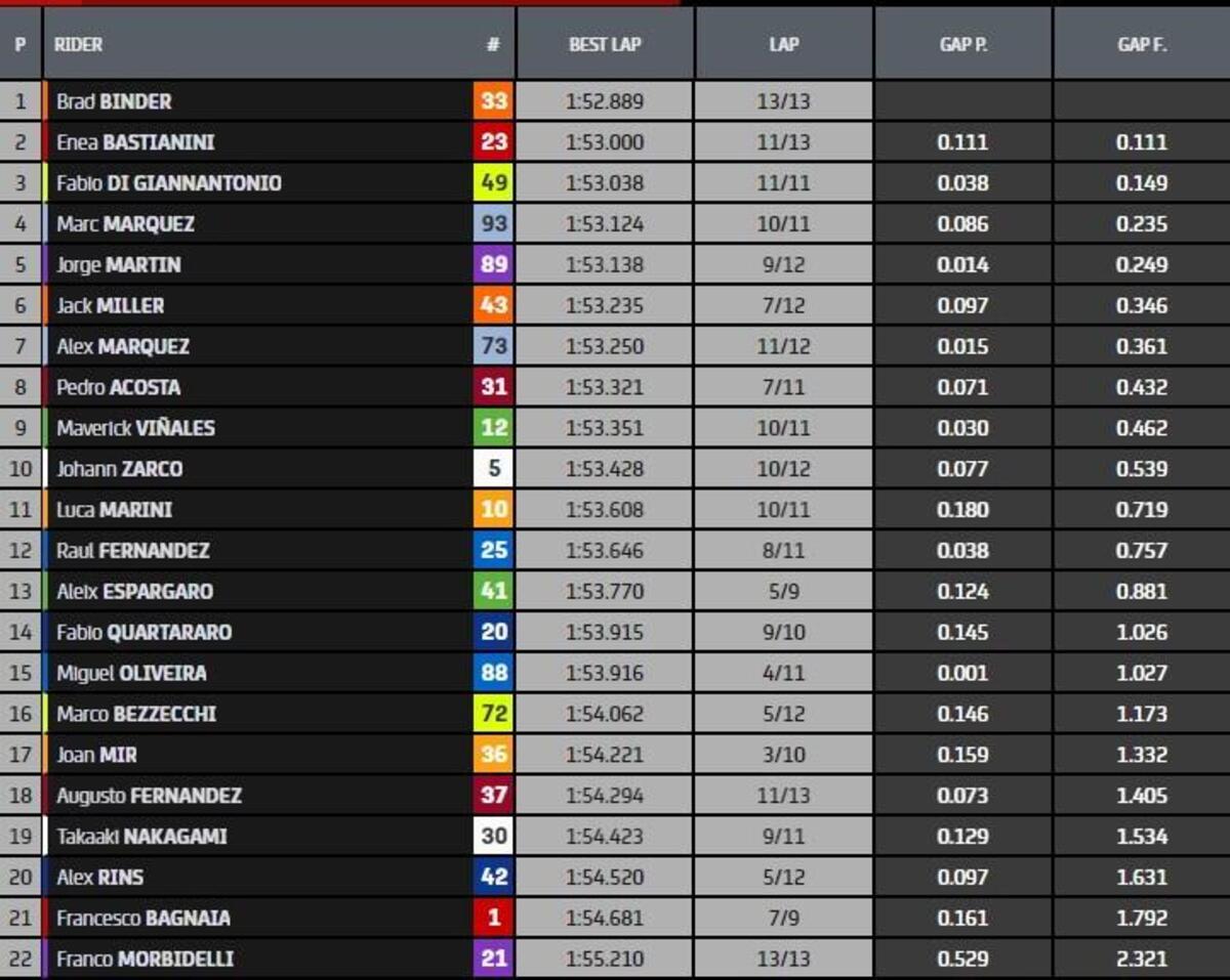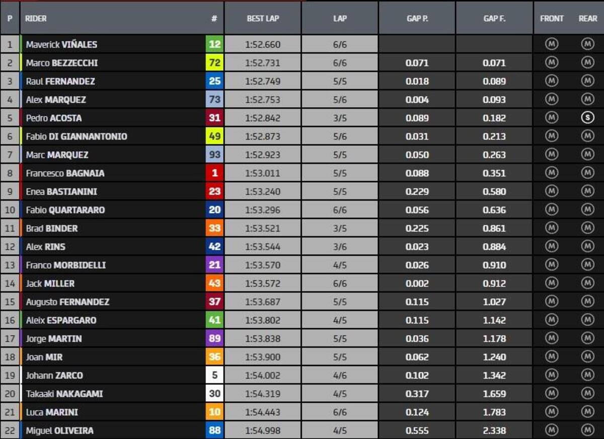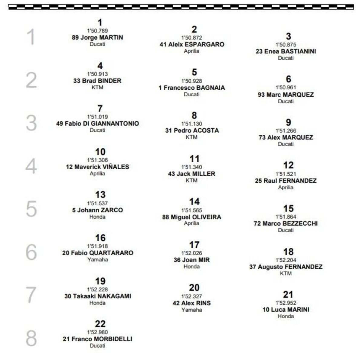 Bagnaia, Martin e Bez poi Quartararo, Marc Marquez e Acosta!