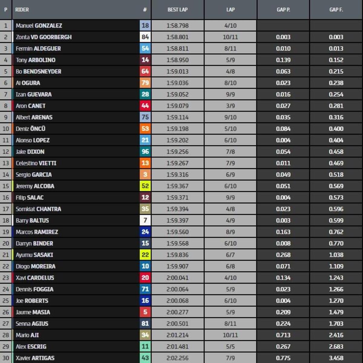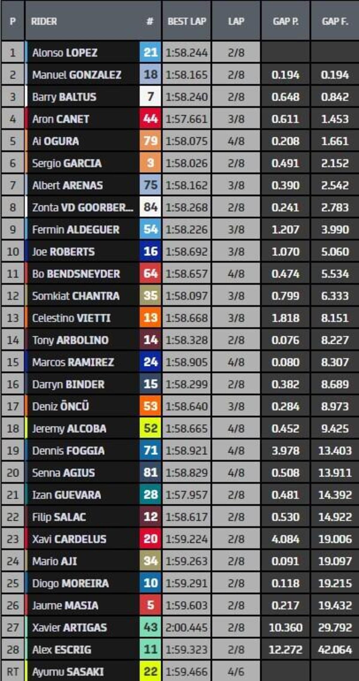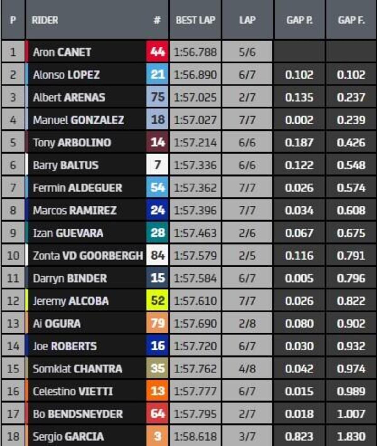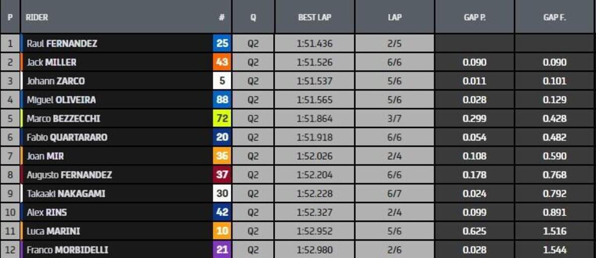 Bagnaia, Martin e Bez poi Quartararo, Marc Marquez e Acosta!