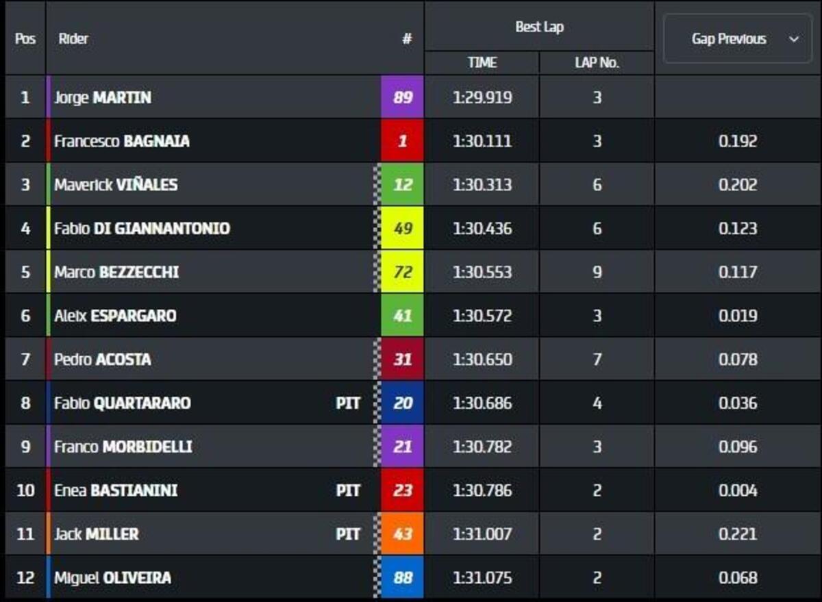 della gara ma Bastianini veniva su forte. Adesso massima concentrazione