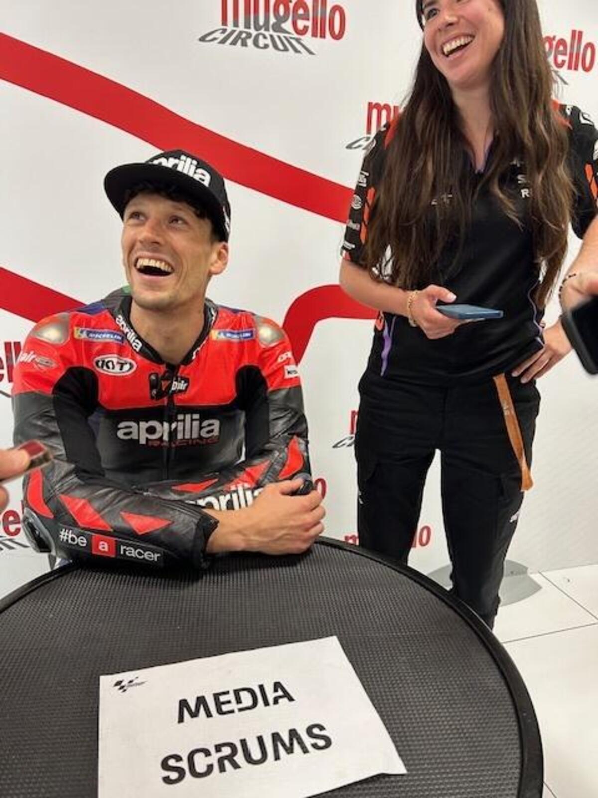 “Non voglio essere il nuovo Capitano, non so se rimarrò in Aprilia. Qui al Mugello ho fatto la gara 35 secondi più veloce ma… sono finito ottavo”. Vinales voleva girare ancora nonostante la pioggia perché ha avuto un feeling diverso sulla pioggia con la moto 24 rispetto alla 23, per questo voleva fare esperienza
