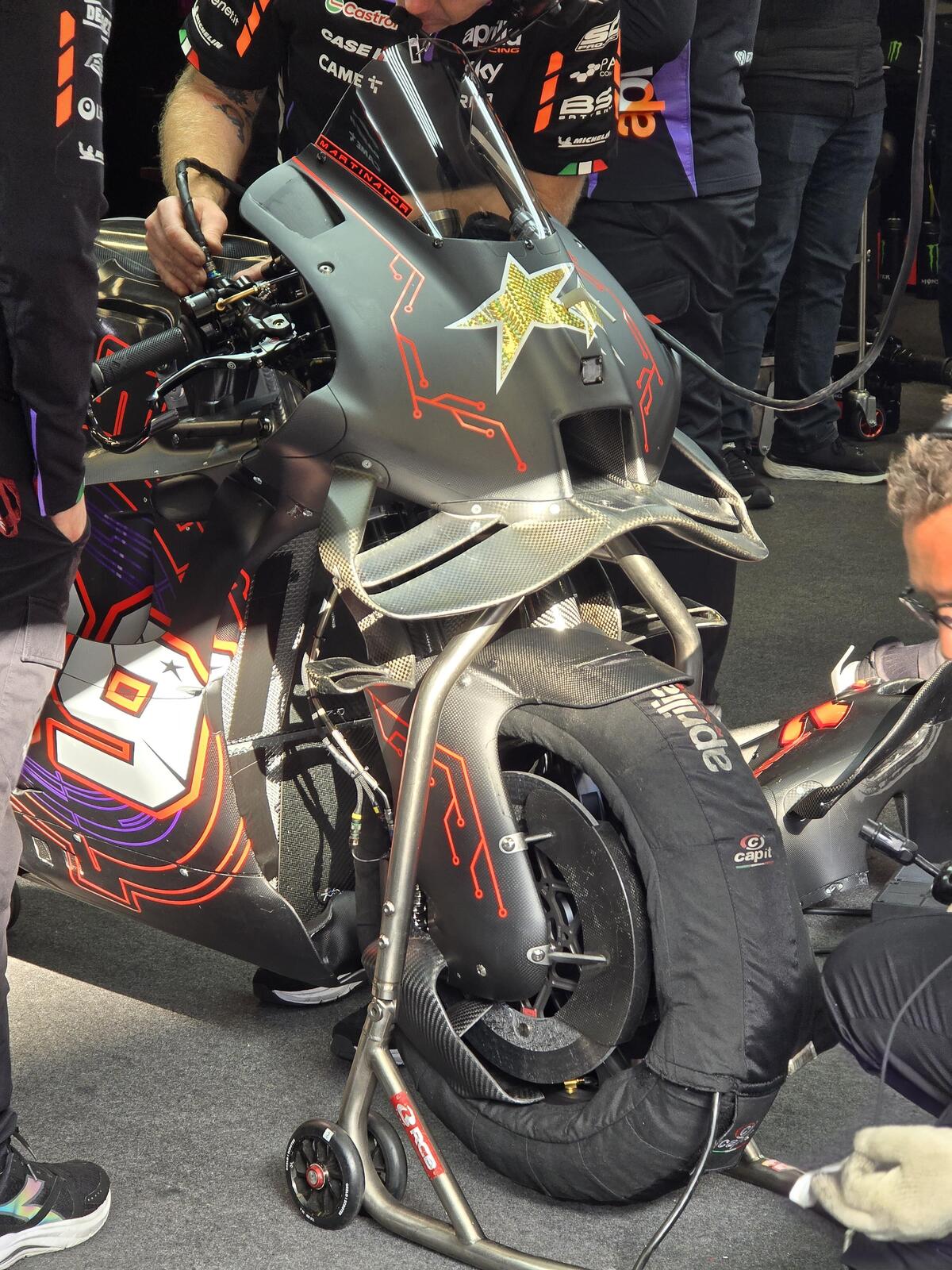 Ecco il programma Aprilia per la giornata di oggi: 4 moto ai box, 2 RS-GP24 e 2 RS-GP25: è la prima volta che le due versioni sono in pista contemporaneamente; il collaudatore Lorenzo Savadori sarà il primo a scendere in pista per lo “shakedown” delle 2 2025; al mattino i piloti proveranno la 2024, mentre a tarda mattinata o nel primo pomeriggio saliranno sulla 2025. Secondo Aprilia la 2025 rappresenta un’evoluzione significativa rispetto alla versione precedente; Jorge Martin, come avete visto nelle foto, scenderà in pista con due stelle sul cupolino e il numero 89 sulla carenatura: al momento non ha ancora deciso che numero userà nella prossima stagione