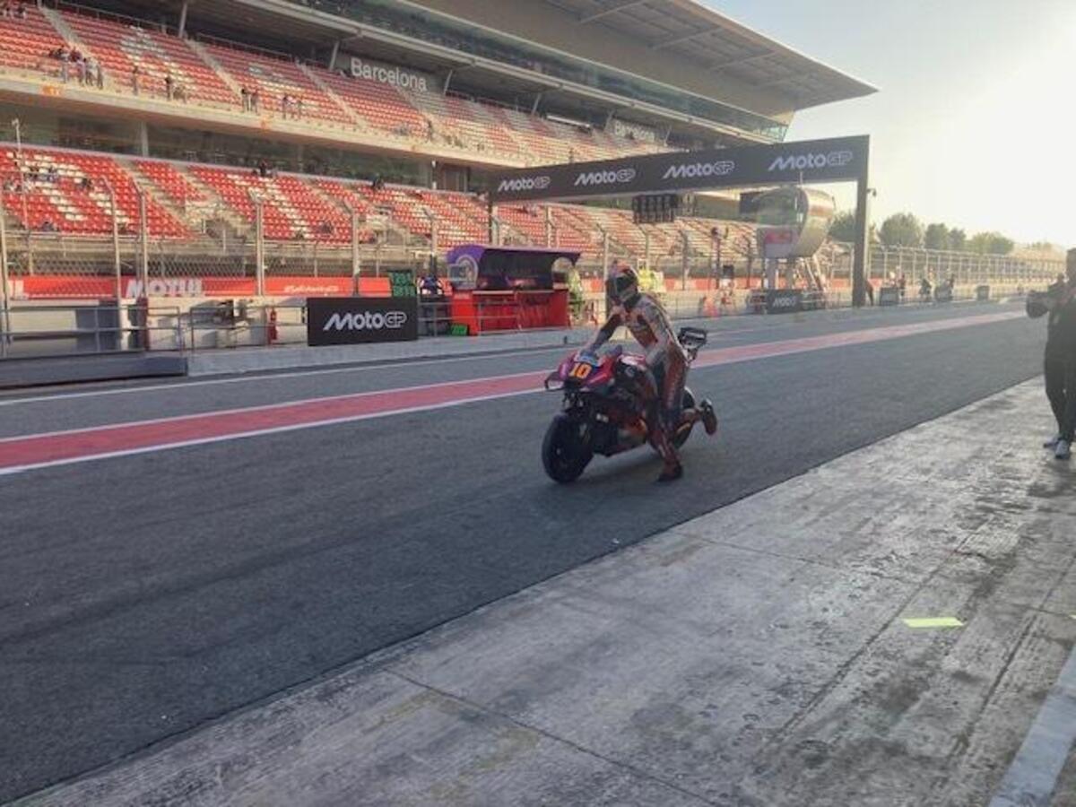 Michele Pirro torna ai box dopo lo shakedown della moto di Marquez