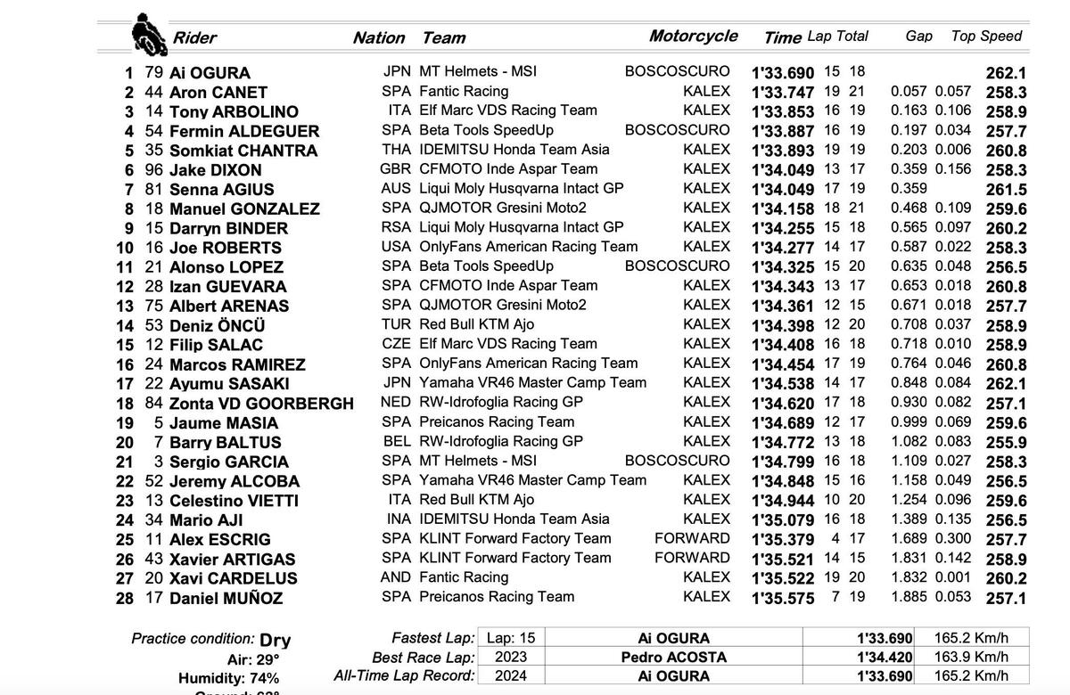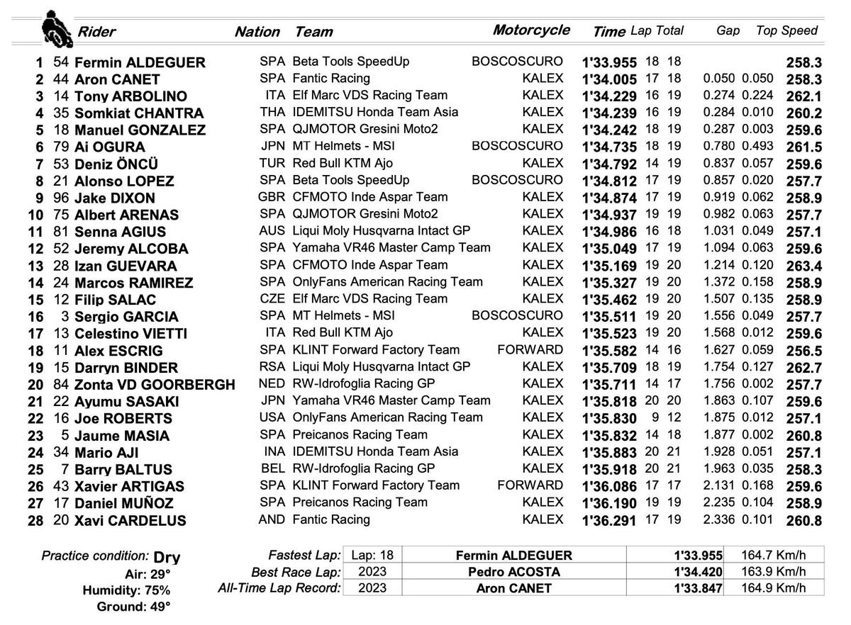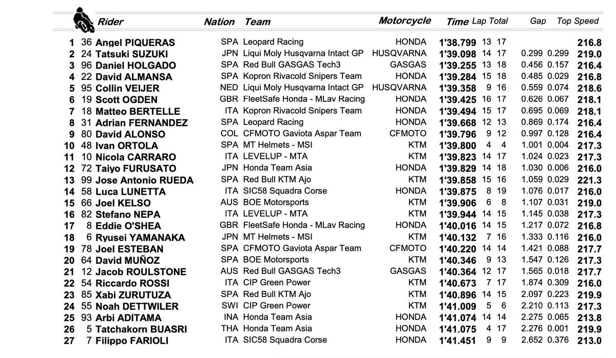 a Chantra: durante il primo giro, è stato superato duro da Aldeguer, che