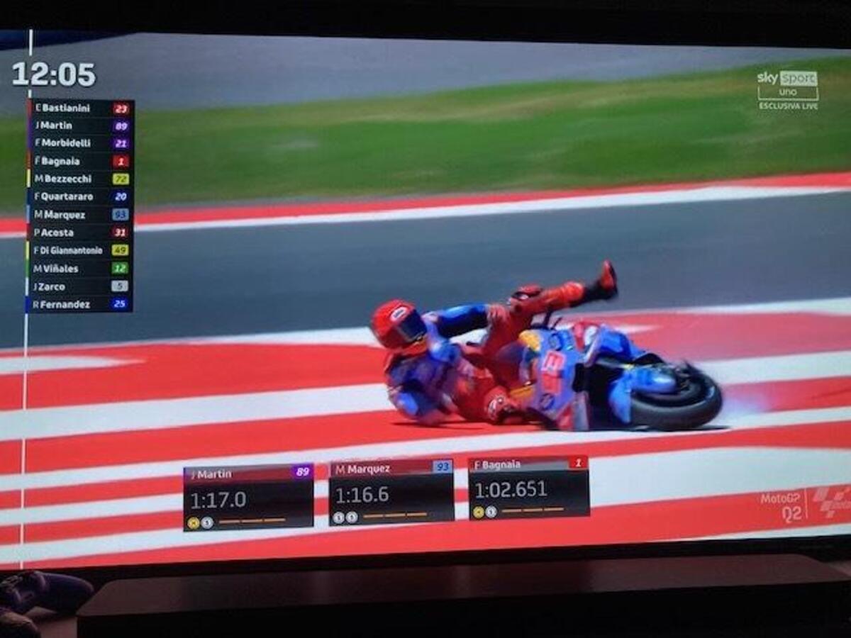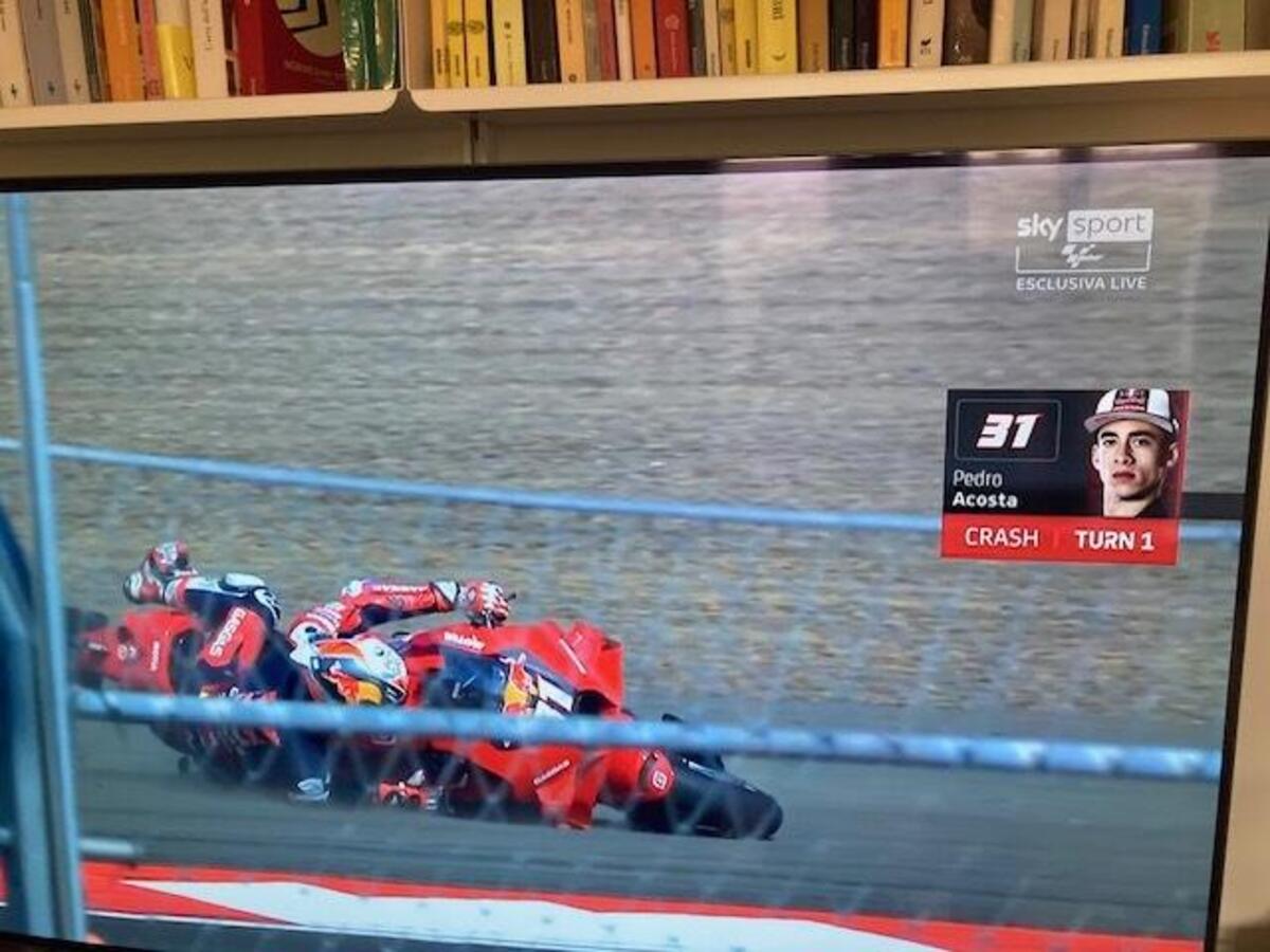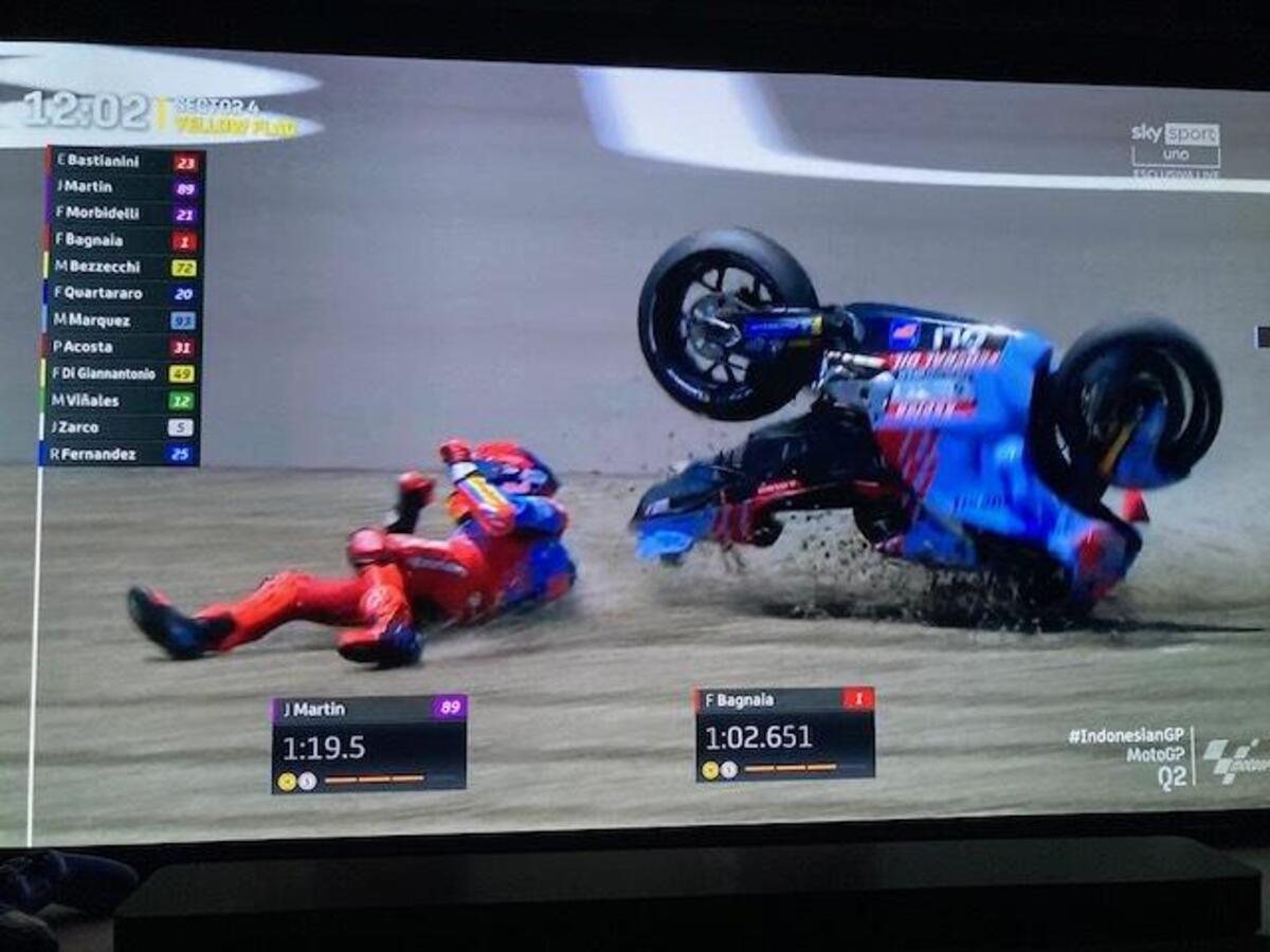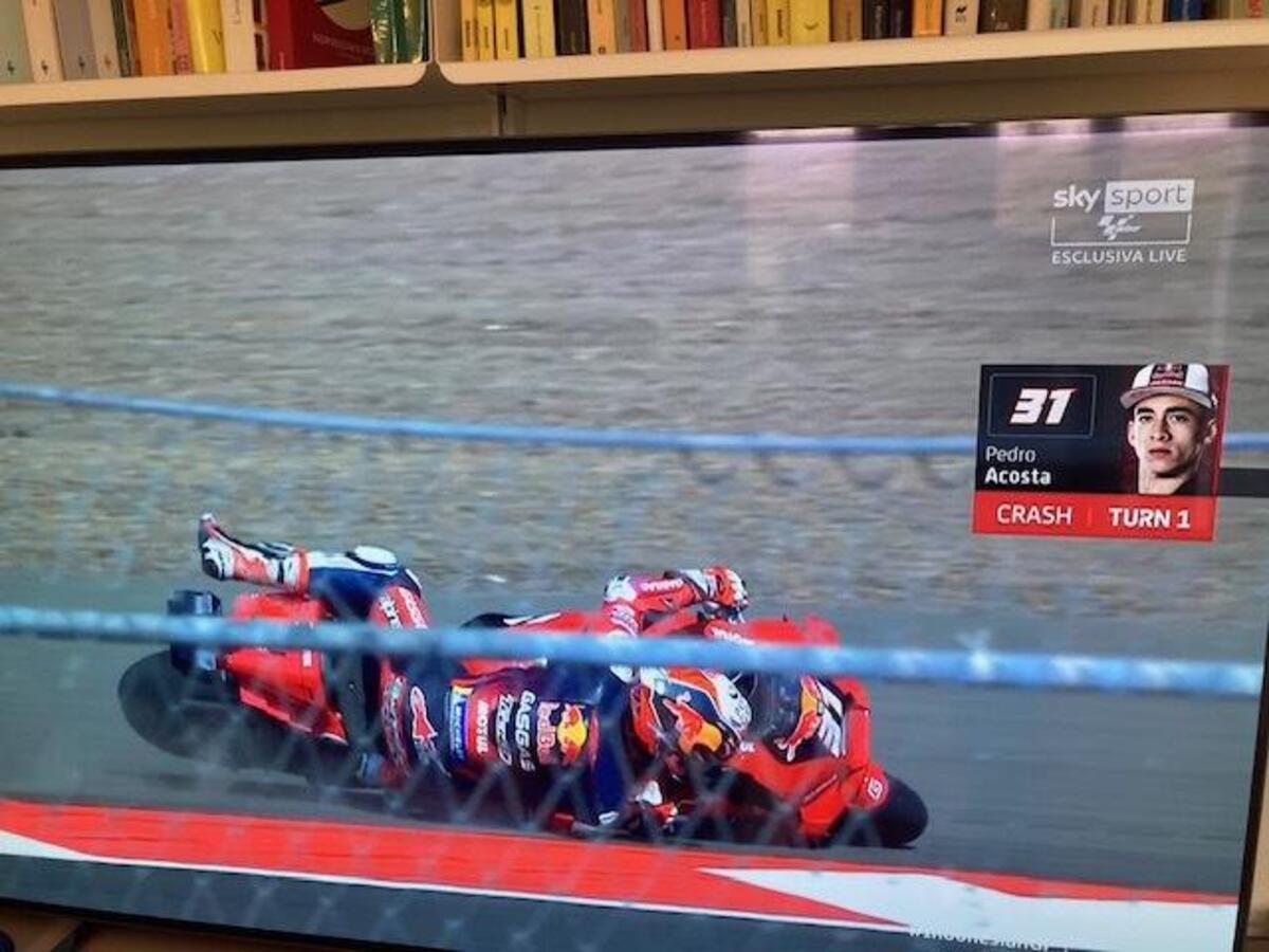 nel sorpasso gli ha preso la gamba destra, a penzoloni fuori dalla pedana