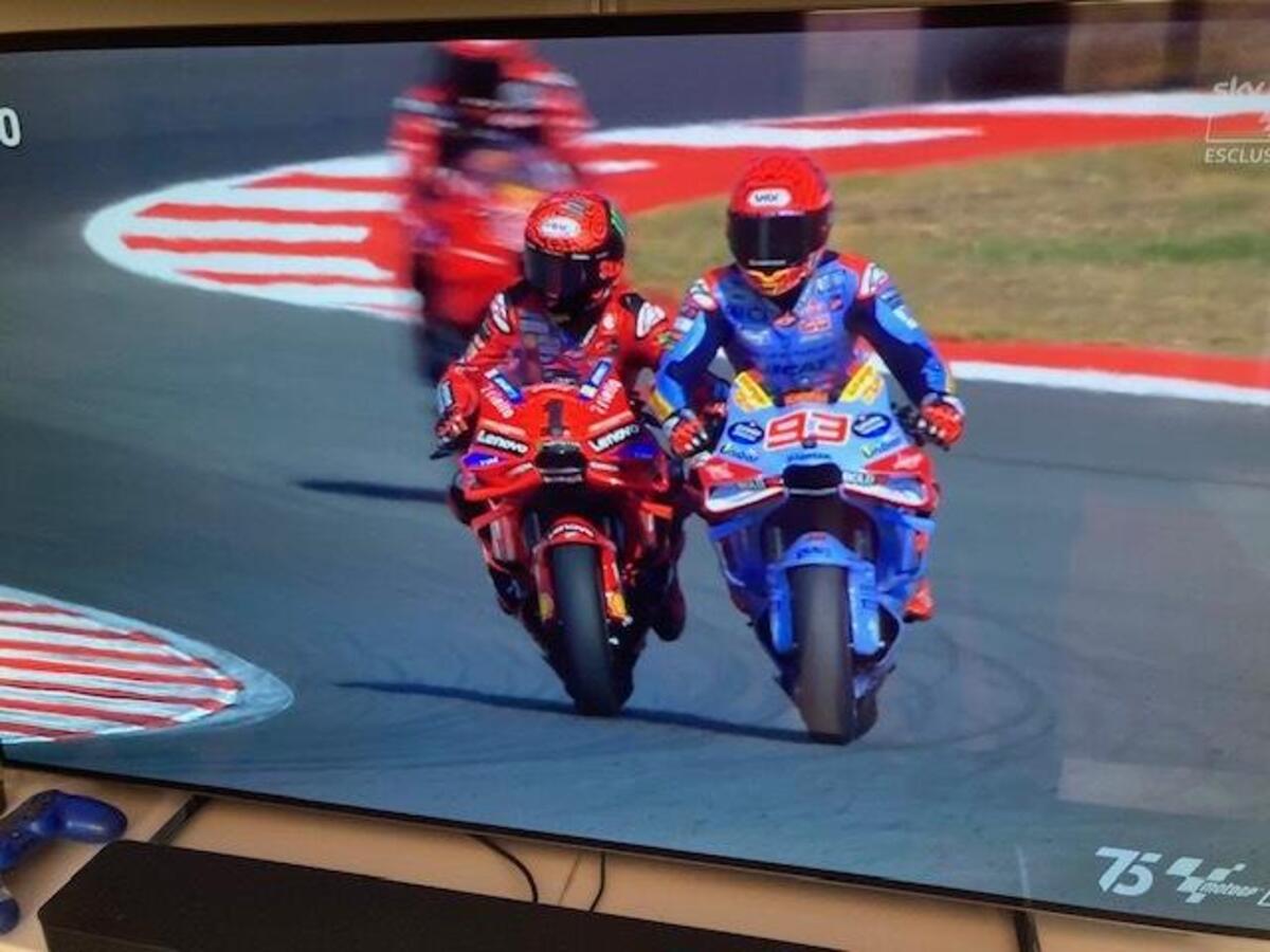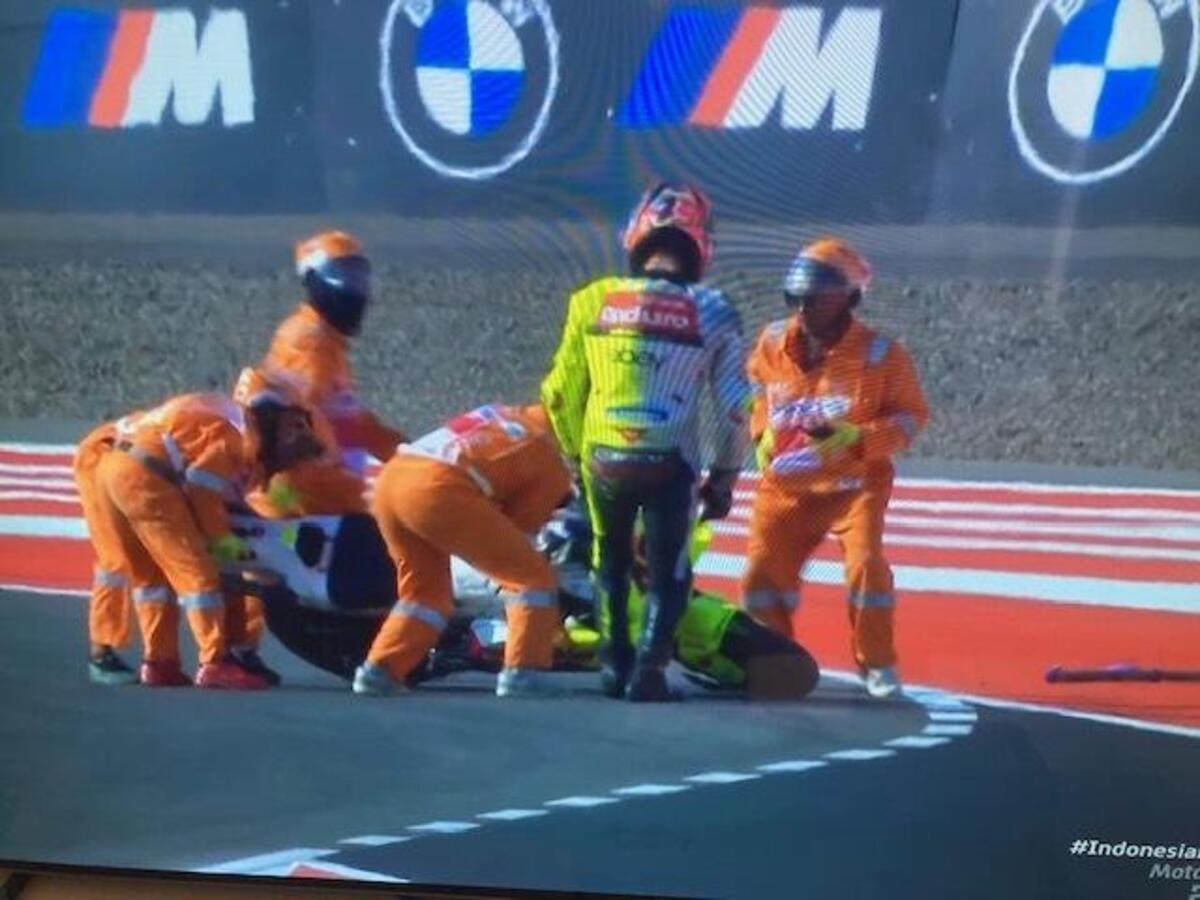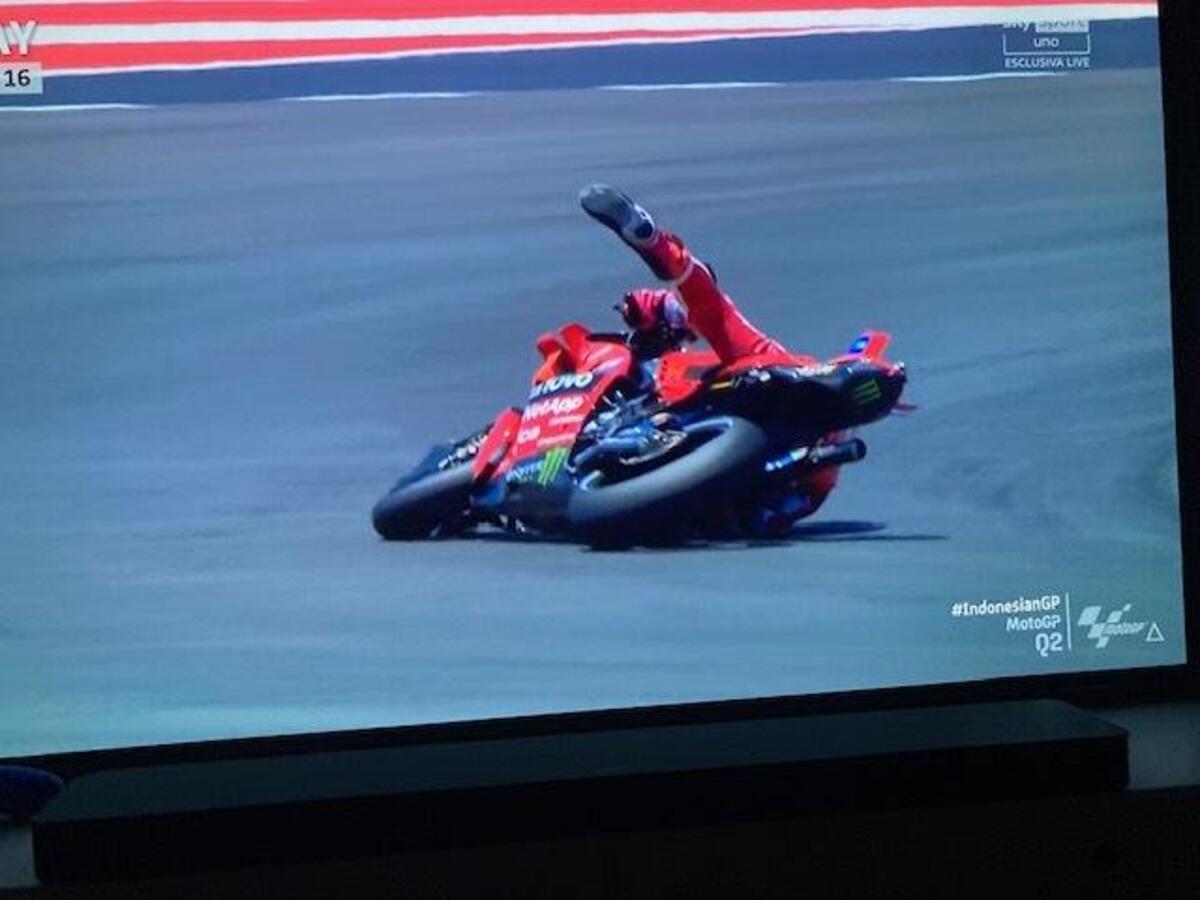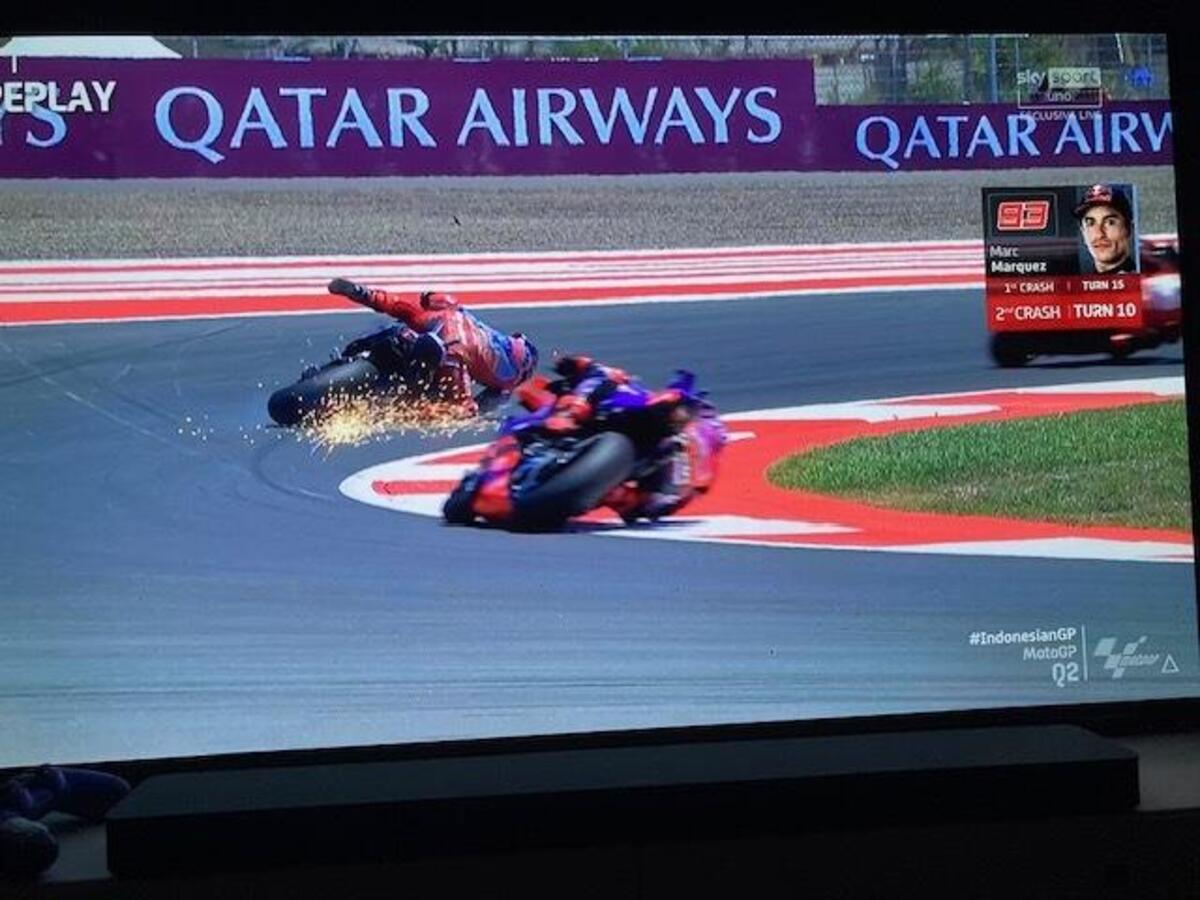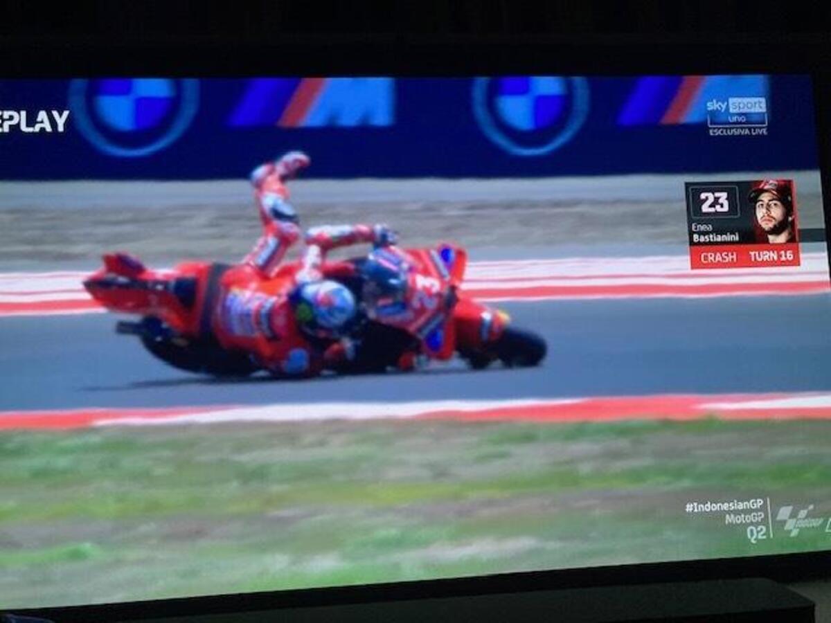 nel sorpasso gli ha preso la gamba destra, a penzoloni fuori dalla pedana
