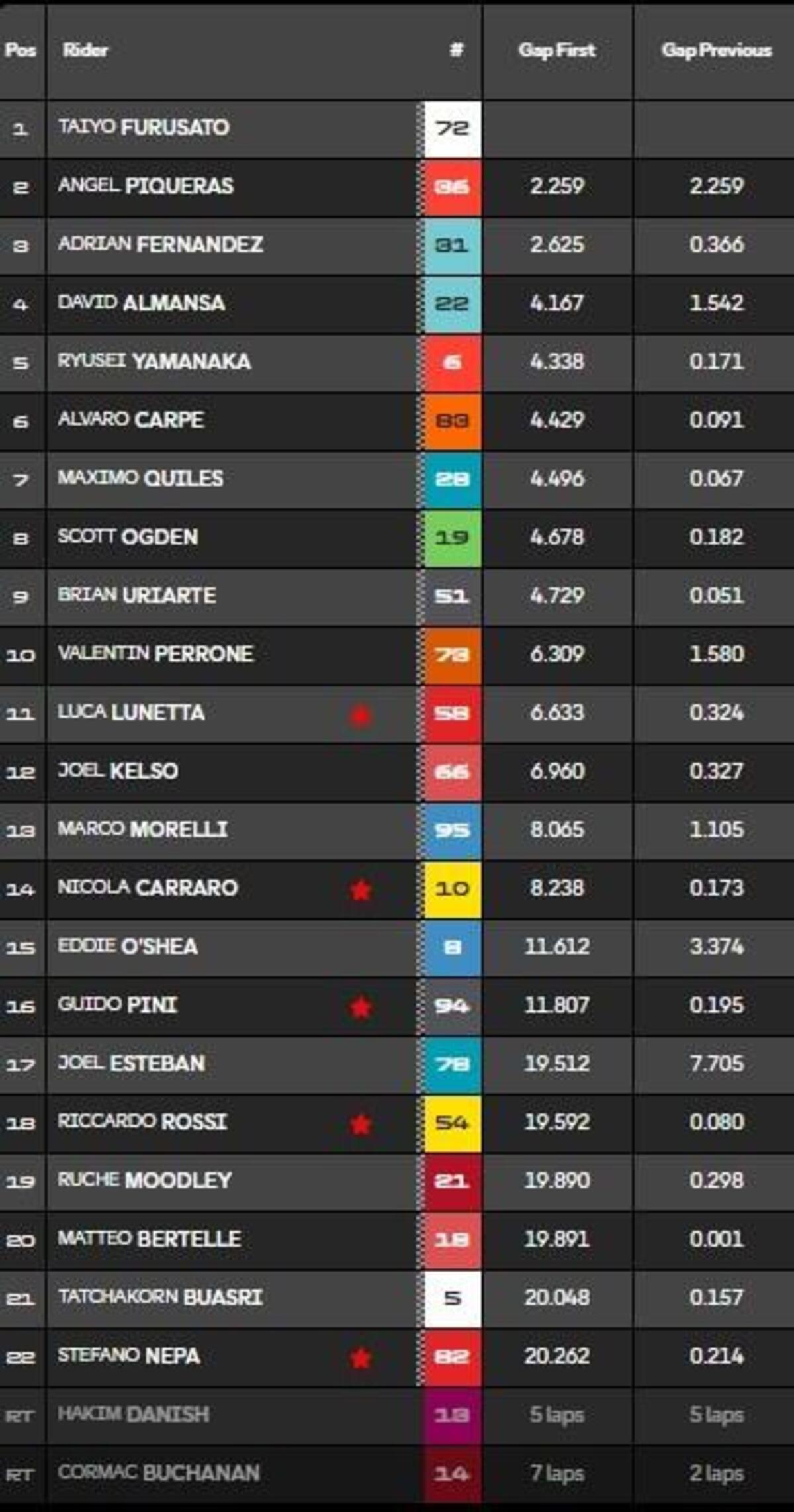 Credo che i più vicini siano l'Aprilia, ma in un fine settimana dove