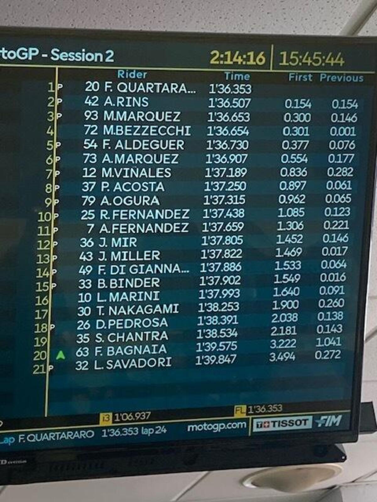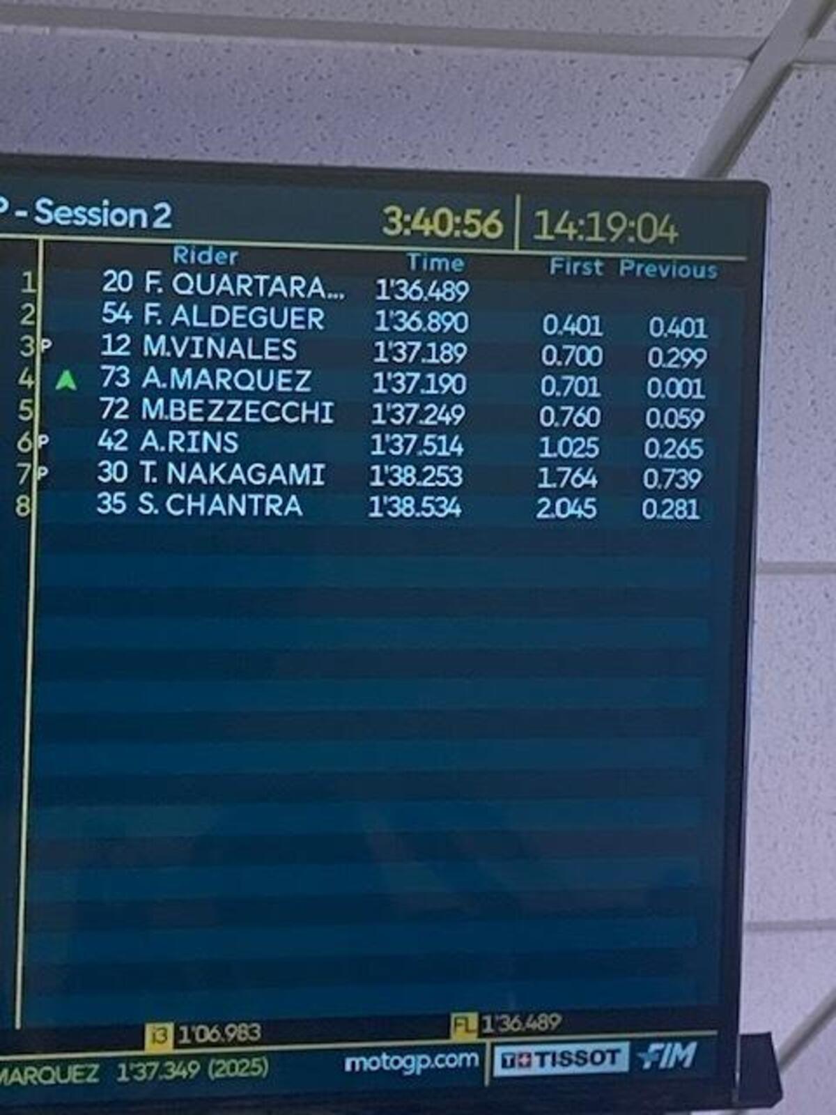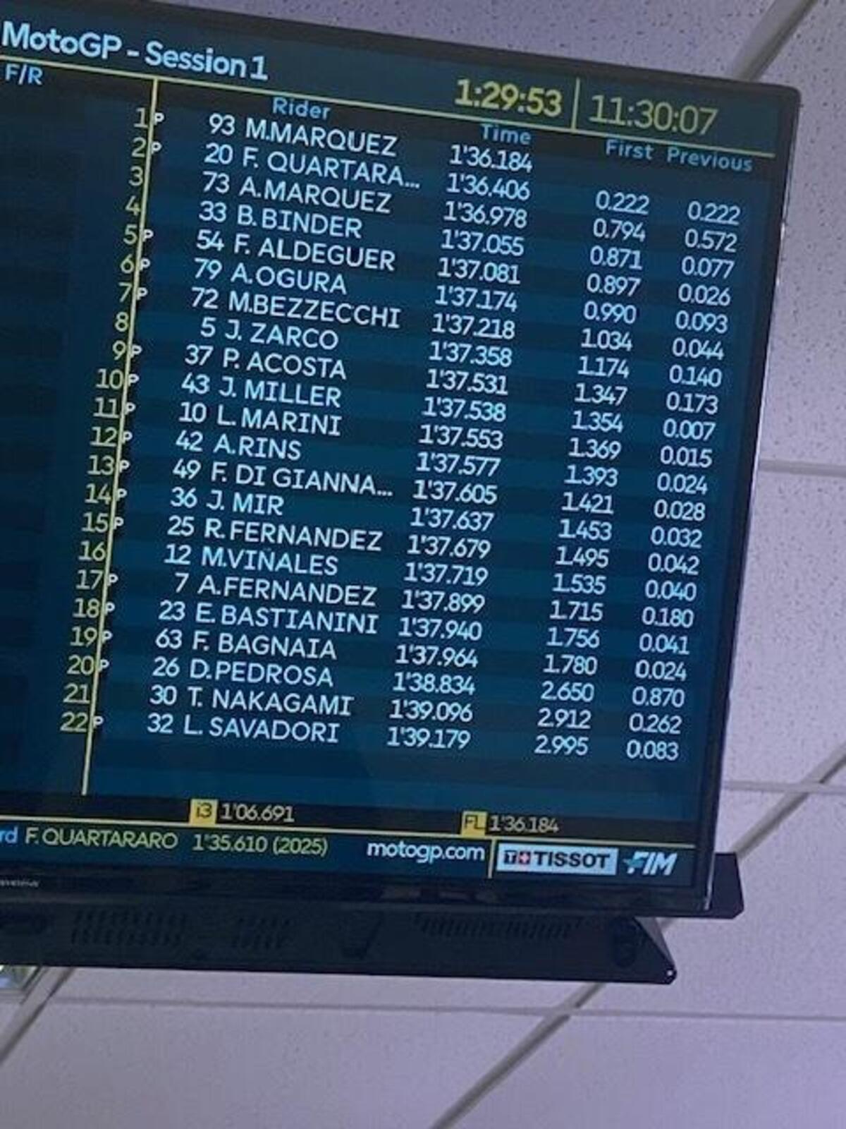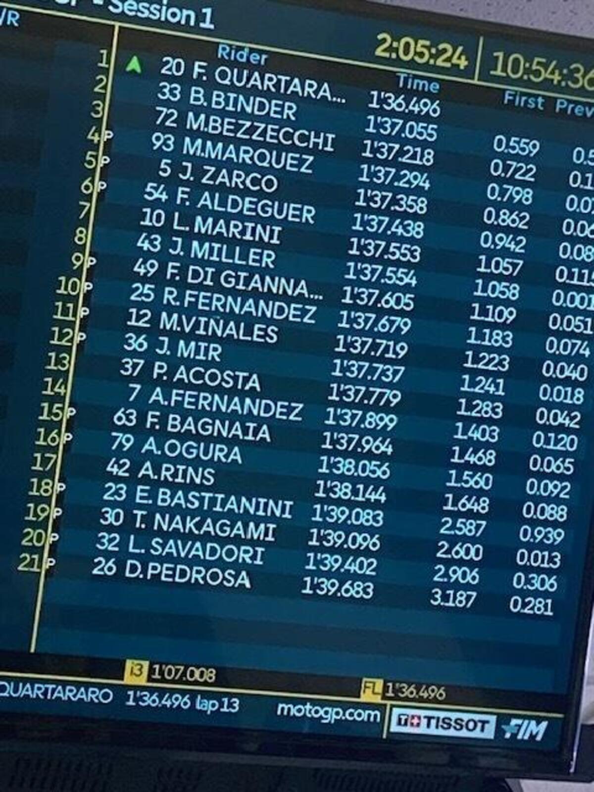E’ iniziata la giornata di test. Si va avanti fino alle 13, poi 13.05 13.15 prove di partenza, 13.20-18.00 test, poi altri 10 minuti di prove di partenza. In pista già Bezzecchi, Binder e Bagnaia.