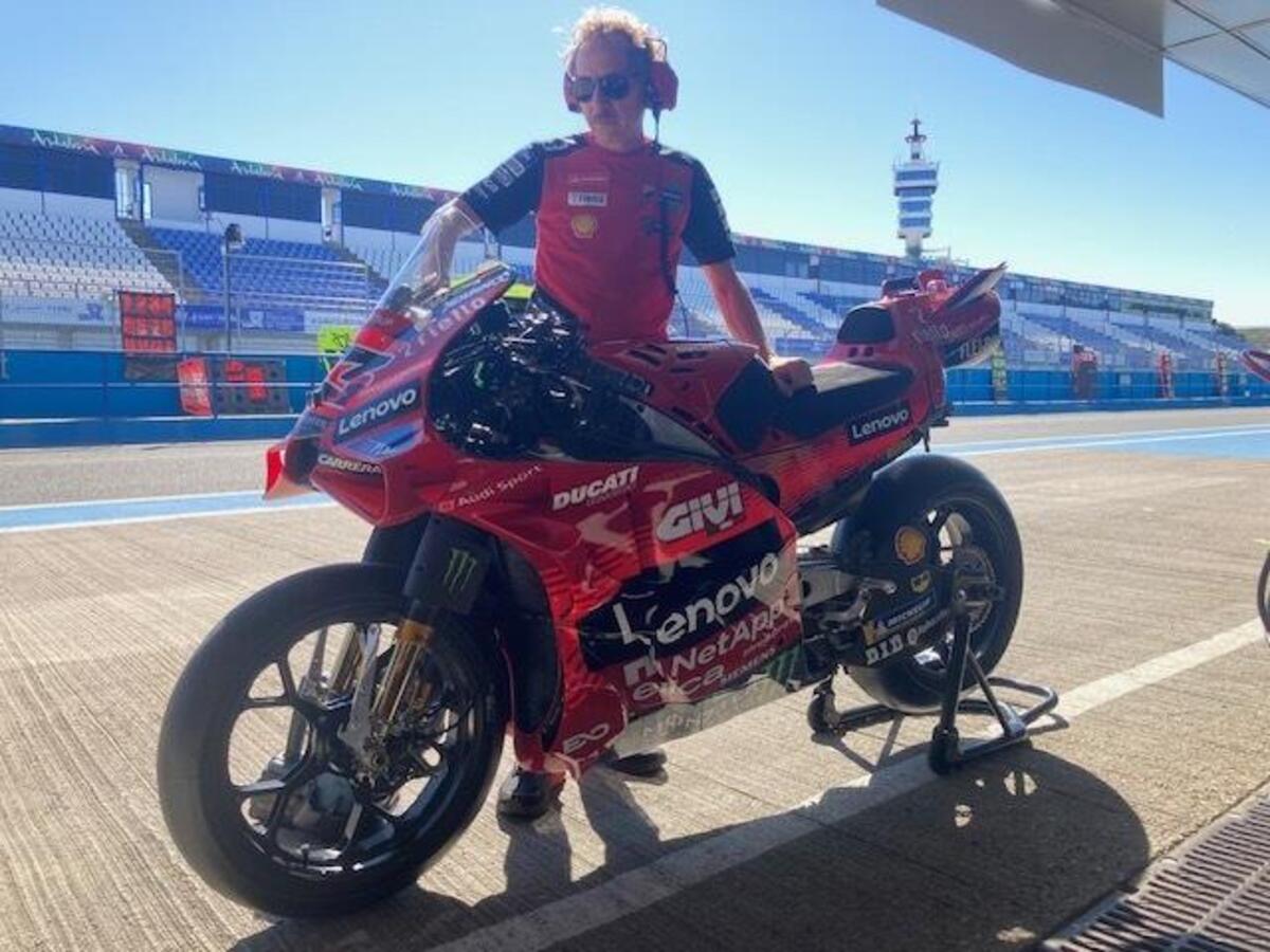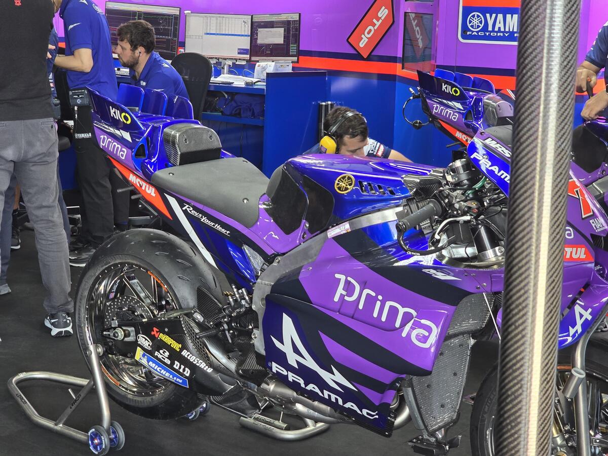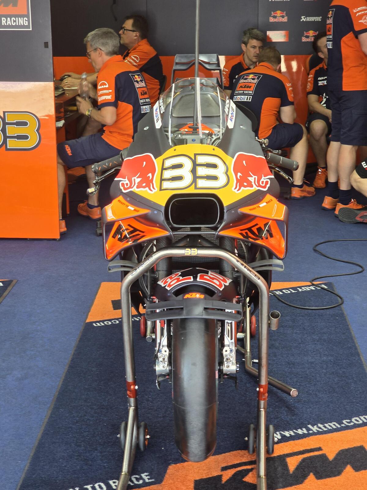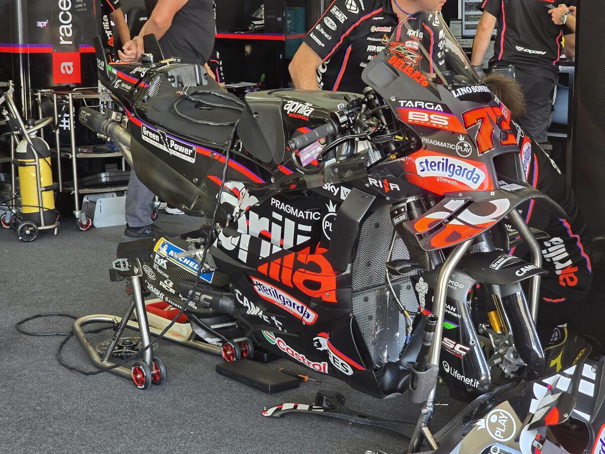 Bezzecchi sta provando un nuovo codone (già visto durante il fine settimana). Poi è previsto un test con un forcellone e altre prove aerodinamiche.