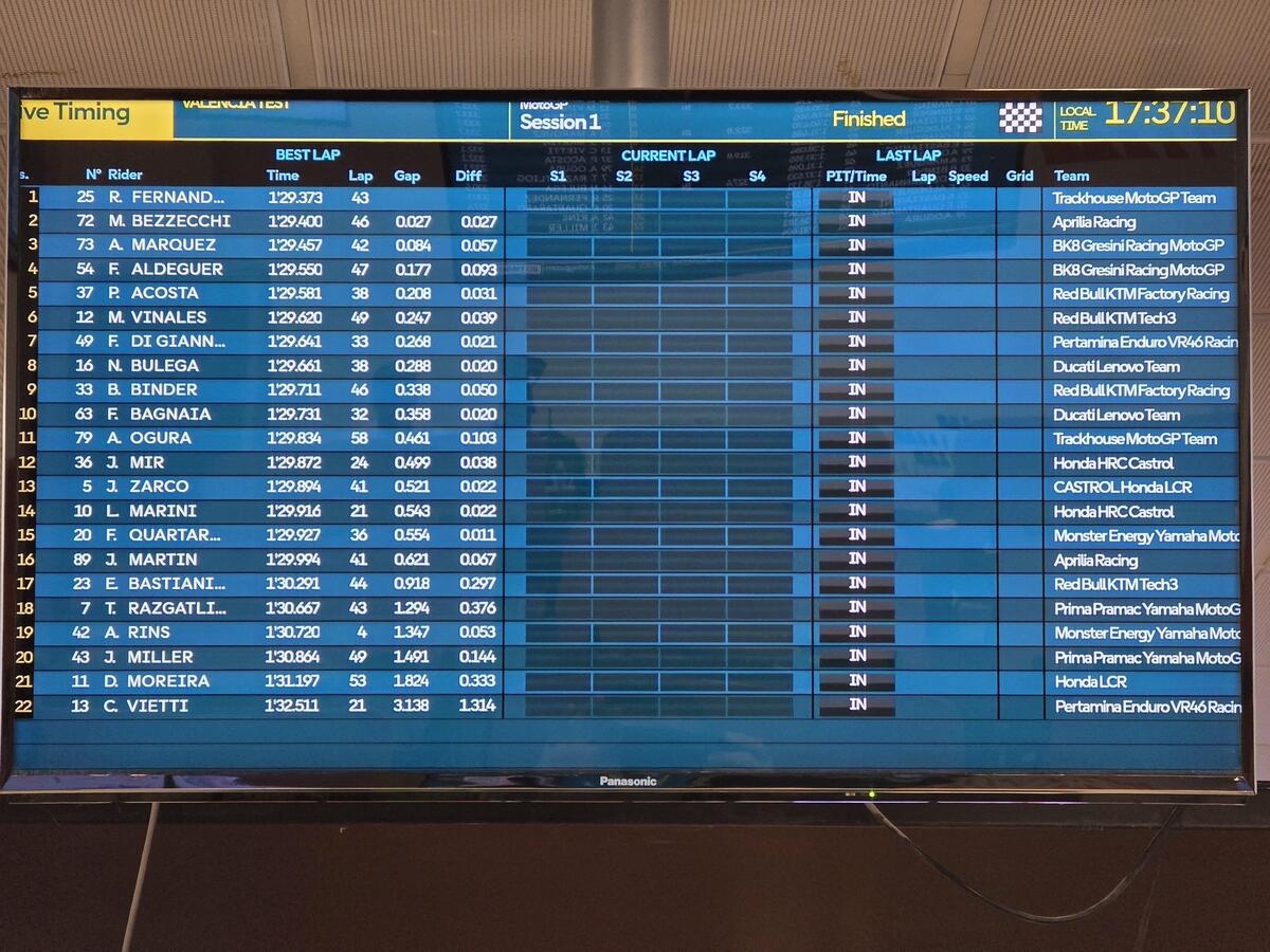 con il motore V4 durante i test di Valencia di martedì, segnando