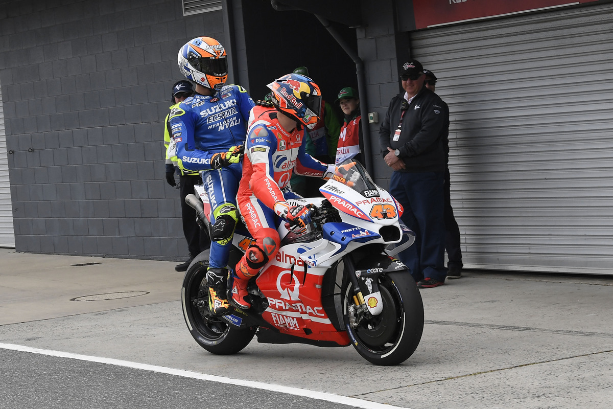 Sole, vento, temperatura bassina: il classico meteo di Phillip Island. Difficile portare in temperatura le gomme, soprattutto l’anteriore: non a caso sono state tante le cadute. Tra le quali quella di Cal Crutchlow, volato alla curva uno e trasportato al centro medico con un problema a un piede: chi era sul posto, ha visto l’arto visibilmente fuori posto. Speriamo non sia nulla di grave.
