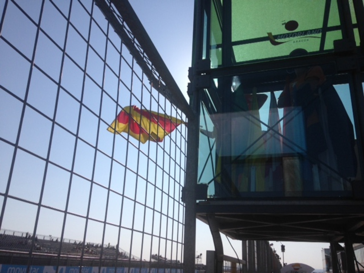 Sul rettilineo sventola la bandiera giallo rossa, qualche moto potrebbe aver perso del liquido