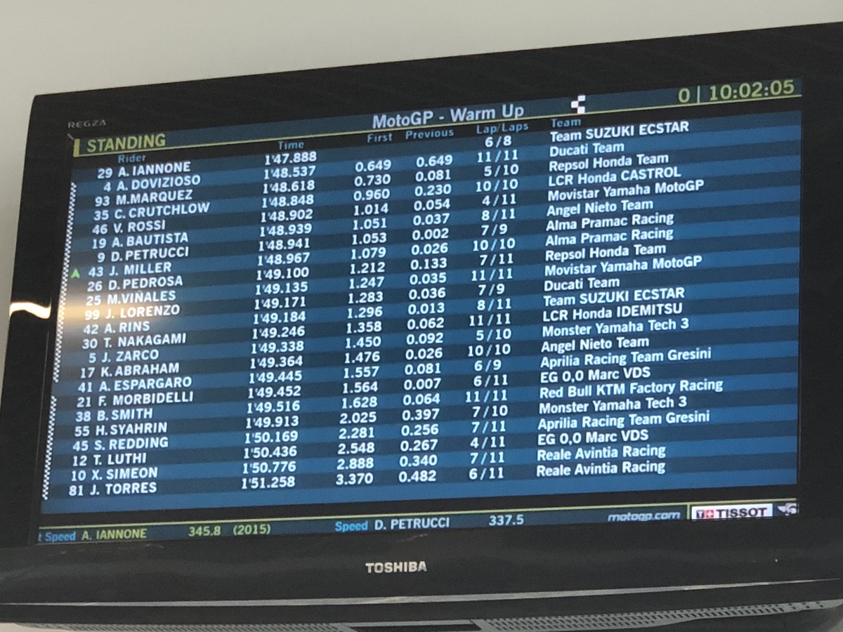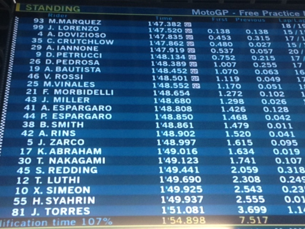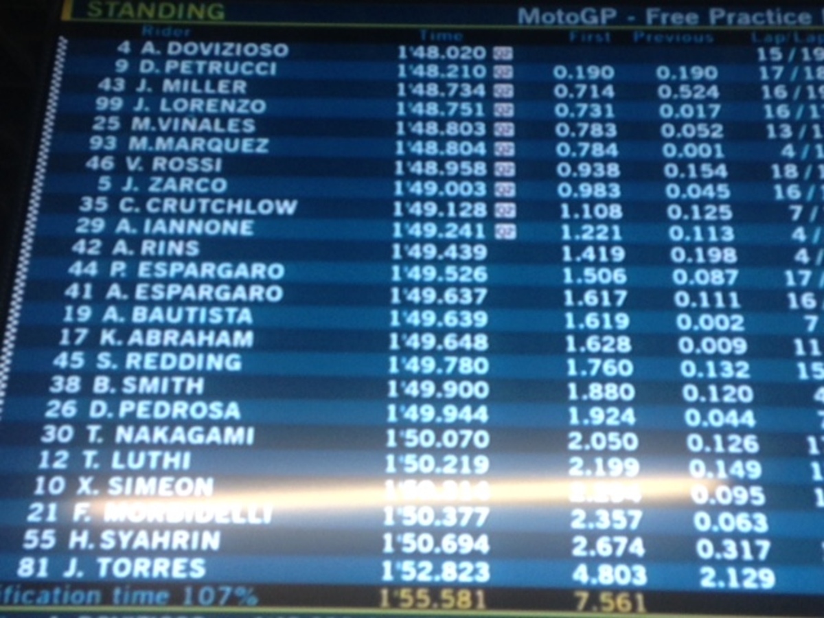 dovizioso scende per la prima volta sotto l’1’49”: 1’48”934, è stato il più veloce in pista. Anche iannone sotto l’1’49”: 1’48”944