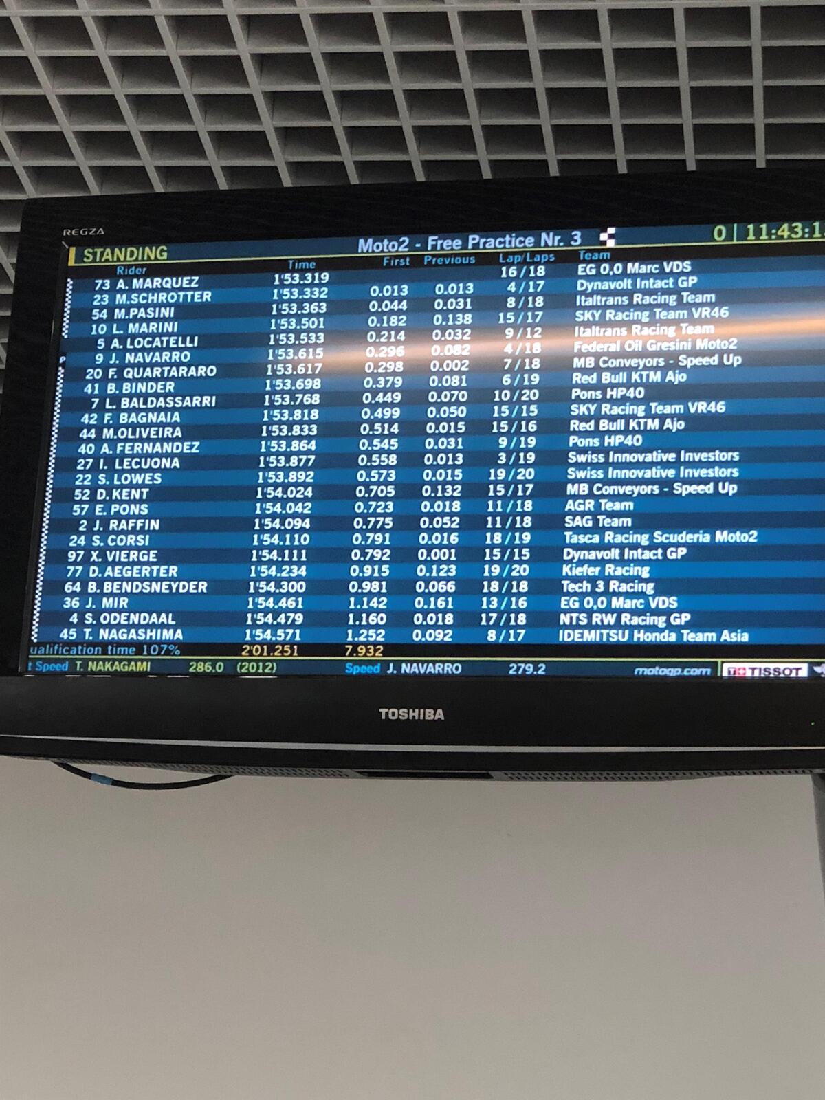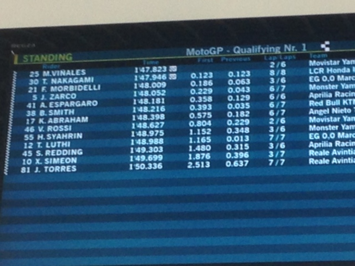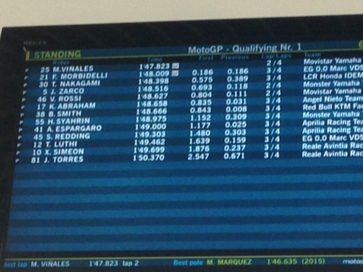 vinaoles gira mezzo secondo più veloce di rossi, è a 4”738 dal compagno di squadra