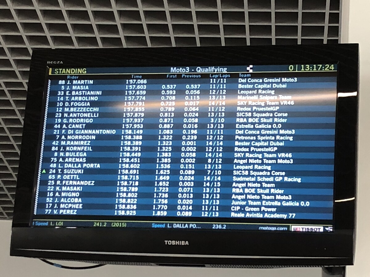 A 17 minuti dalla fine delle prove libere: Arbolino, Martin, Bezzecchi,