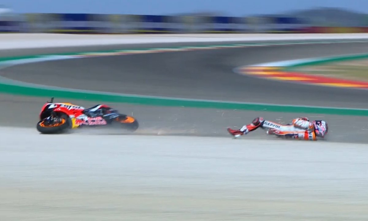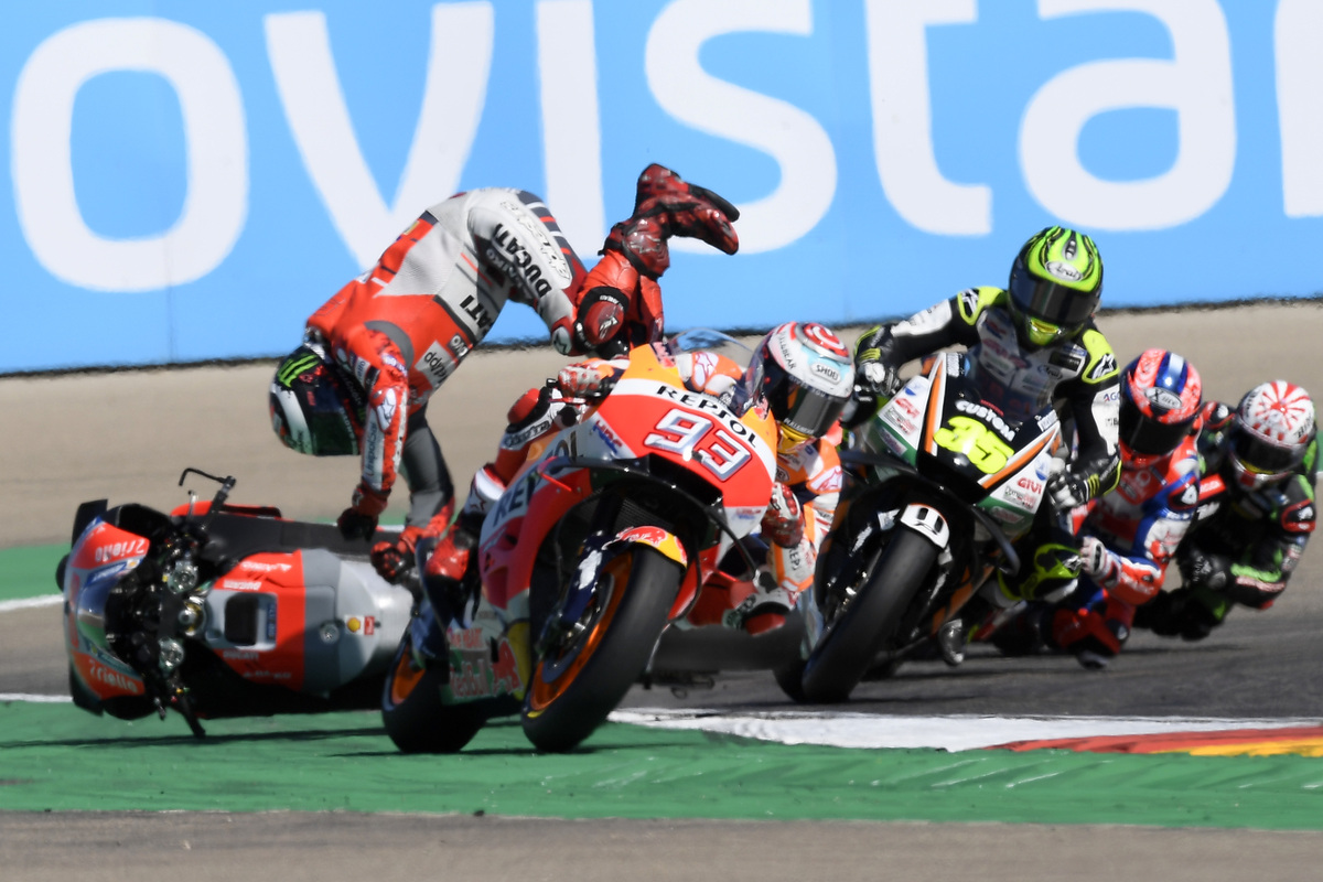 attenzione, con la caduta di lorenzo, cambia probabilmente la gara e la tattica di dovizioso e marquez