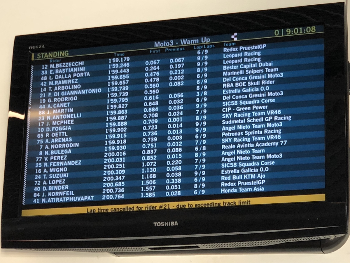 FINALE FP1 MOTO3 (ASCIUTTE):kornfeil 1’59”206 rodrigo bezzecchi oettl martin masaki perez bastianini bulega arenas foggia mcphee arbolino migno masia