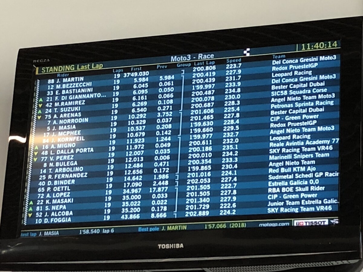 Terminano le terze prove libere della Moto3. Questo l'ordine di arrivo