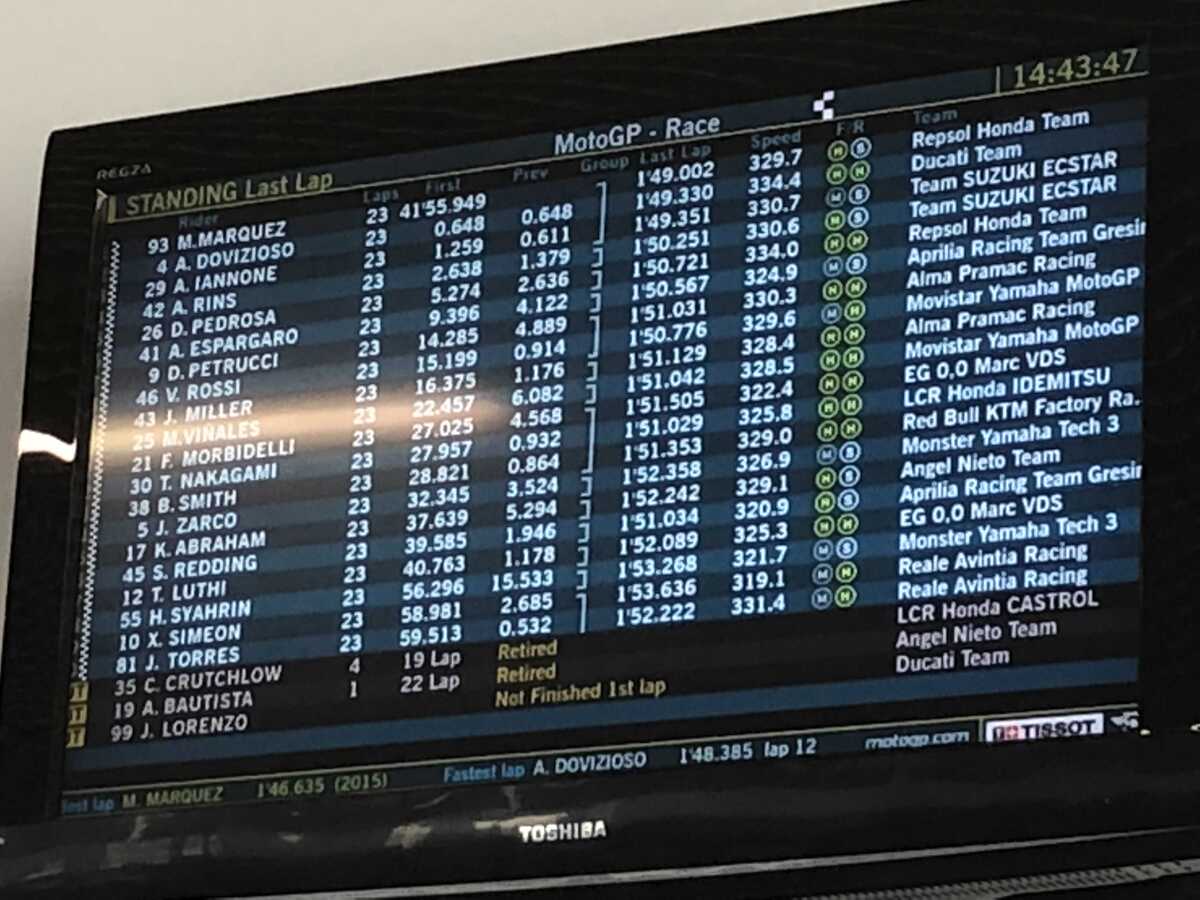 Dovisiozo. 4° Crutchlow seguito da Iannone e Petrucci. 9° Rossi