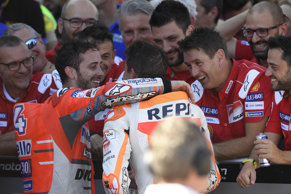 Andrea Dovizioso ai microfoni di SKY: “Non male, come passo, al momento, siamo in linea io, Marquez e Lorenzo. Ma i dettagli fanno la differenza, quindi c’è ancora molto da lavorare. con la morbida non ho fatuo gran giro. Per la gara bisogna lavorare sul consumo delle gomme, bisogna capire quale direzione prendere e conta molto anche la guida del pilota. Domani possono ancora succedere tante cose: Marquez farà quasi di tutto per vincere questa gara rispetto alle ultime, dove, tra “virgolette” si è accontentato”.