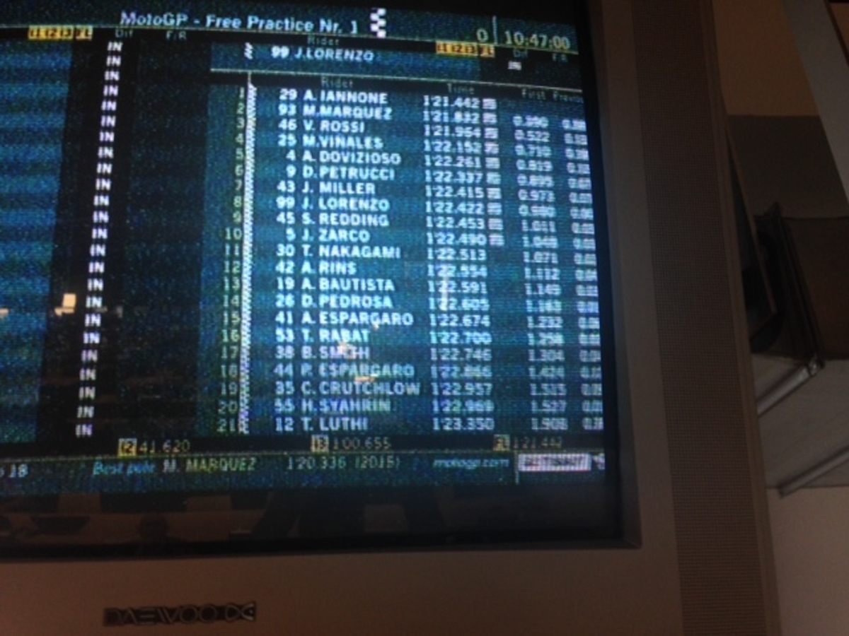 Iannone: soffice/media, 15 giri, il migliore in 1’22”120. media nuova e soffice nuova: 9 giri, il migliore il terzo in 1’21”442.