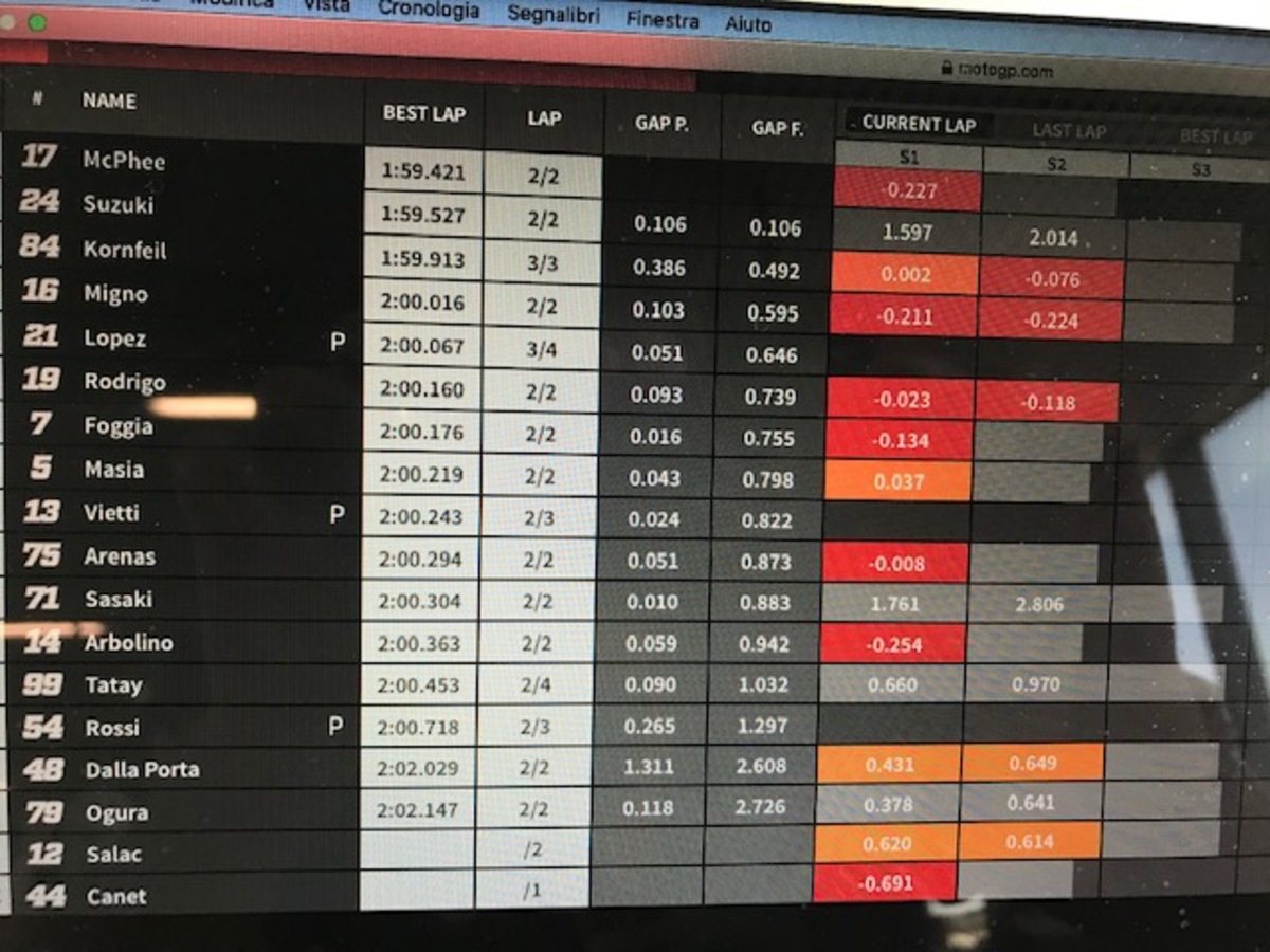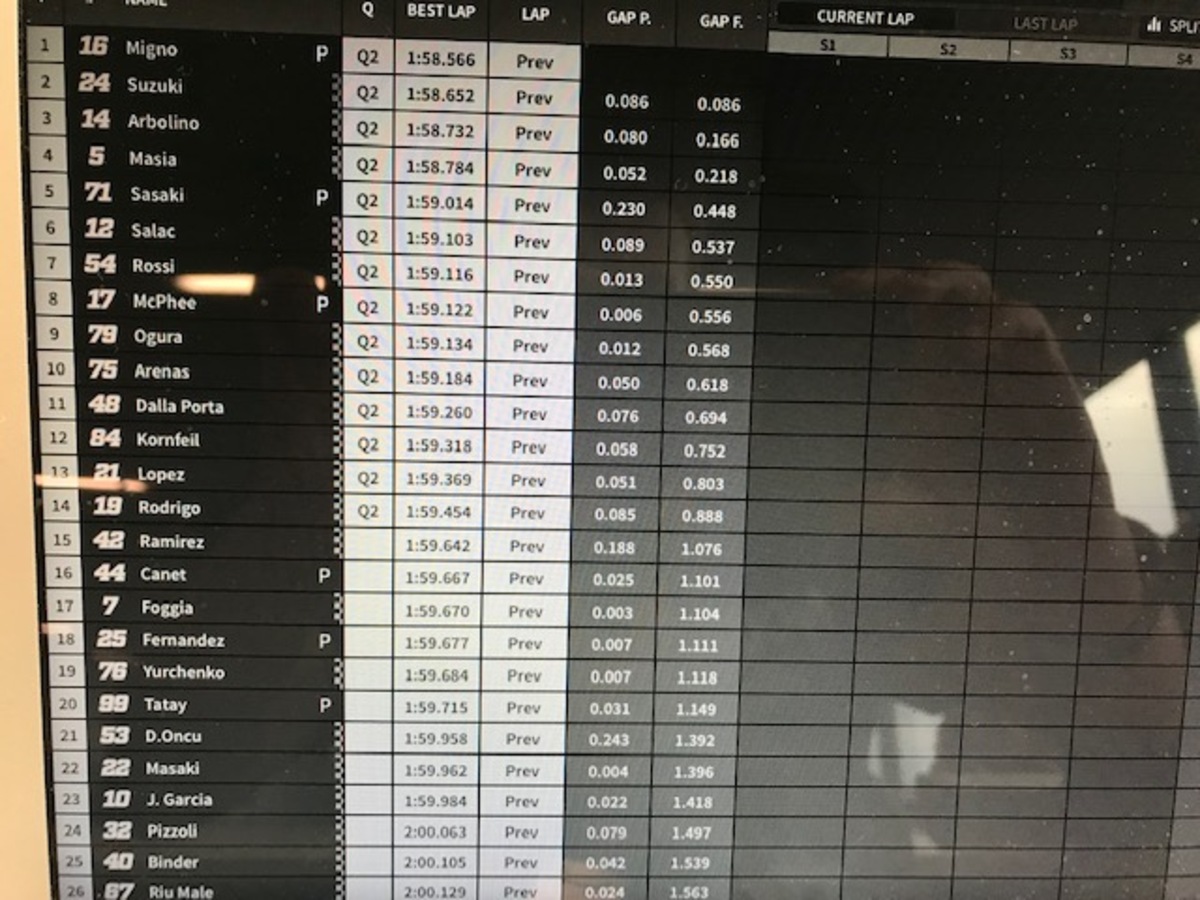 Andrea Migno ai microfoni di sKY: “Mi sto trovando bene, come a Misano. Buona velocità. Importante fare il tempo oggi, perché è prevista pioggia per stanotte. Mi sento abbastanza bene”.