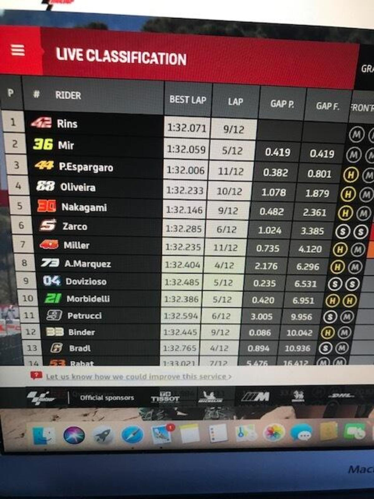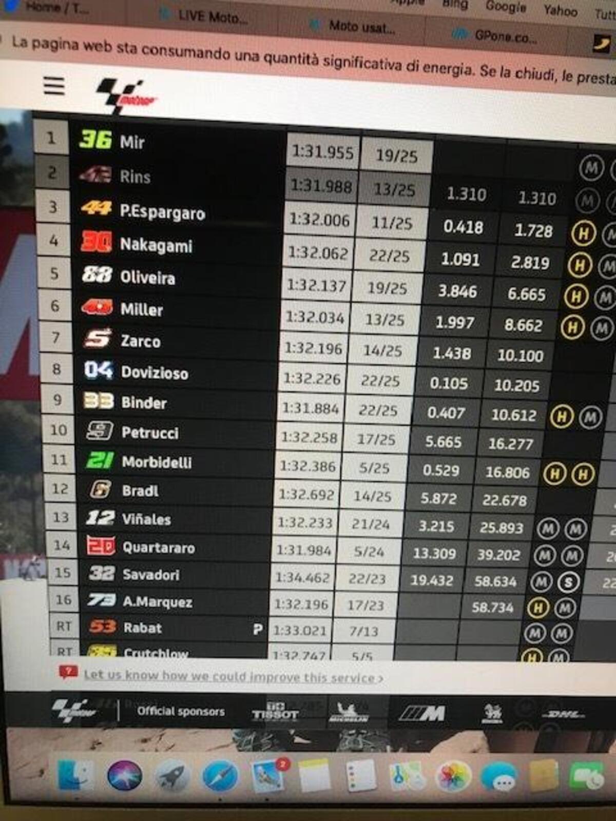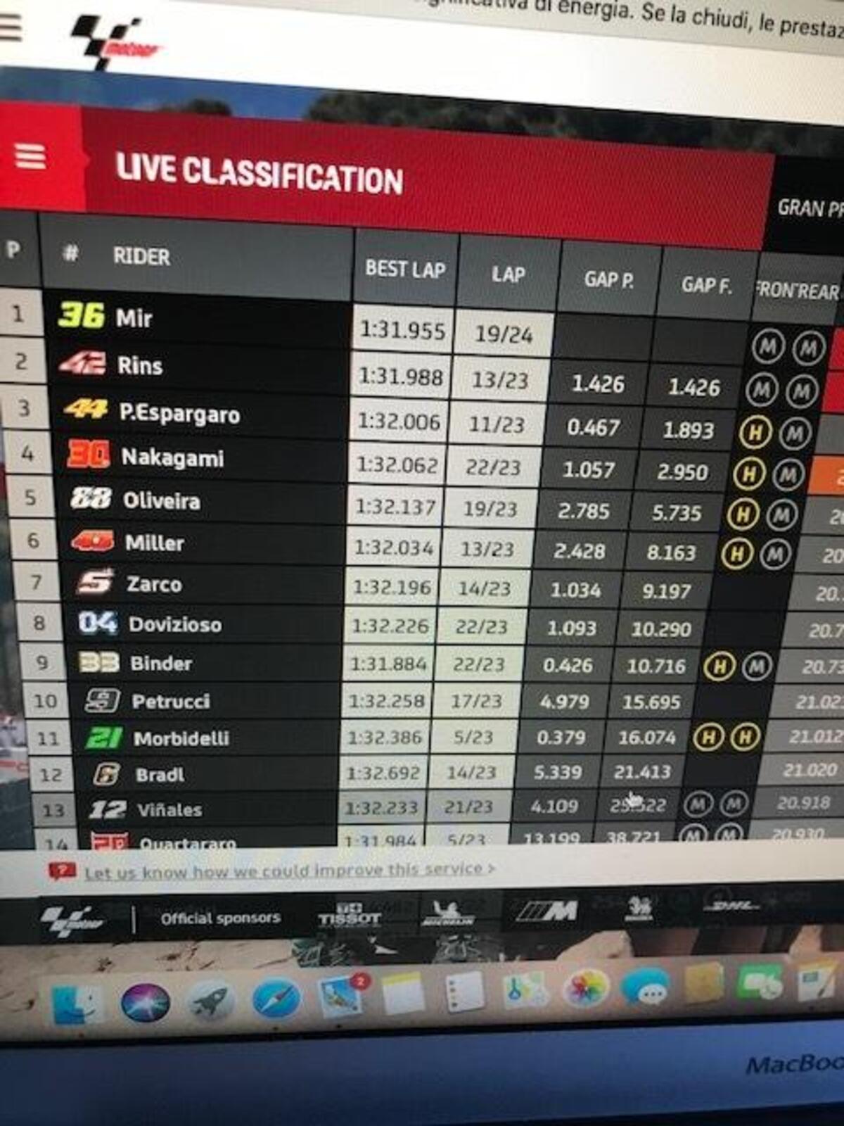 “Io sono completamente focalizzato sulla gara, qualcuno ha detto che non sono motivato, ma non è vero: voglio finire il campionato nel miglior modo possibile. Ci sono tante cose da migliorare, ma mancano due gare, sono totalmente motivato, devo cercare di tornare a essere veloce. Sono motivato.