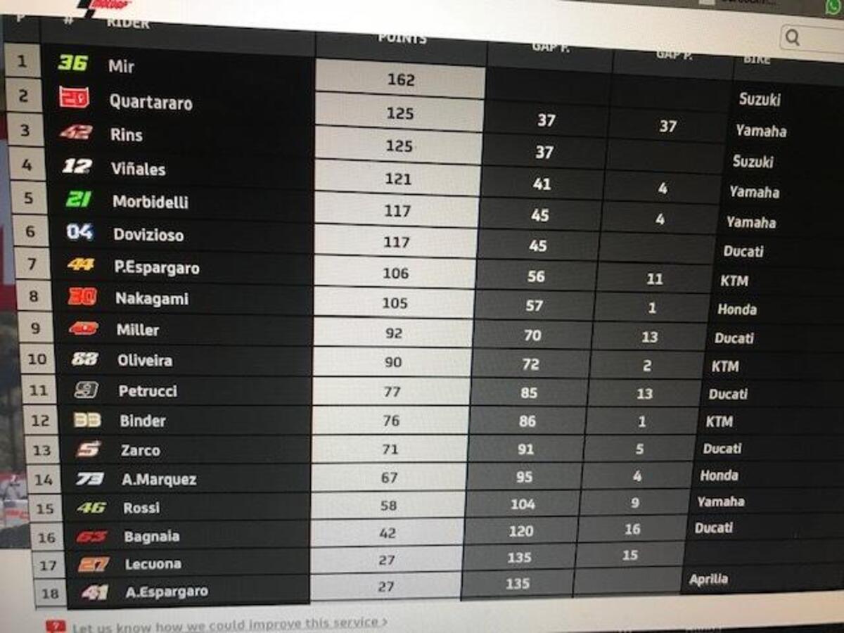 “Dobbiamo vedere come poter migliorare: la Suzuki vanno sempre più forte, sempre due podi con i piloti e ne hanno solo due mentre noi non siamo regolari: Morbidelli ha vinto ad Aragon2, oggi è arrivato molto indietro.