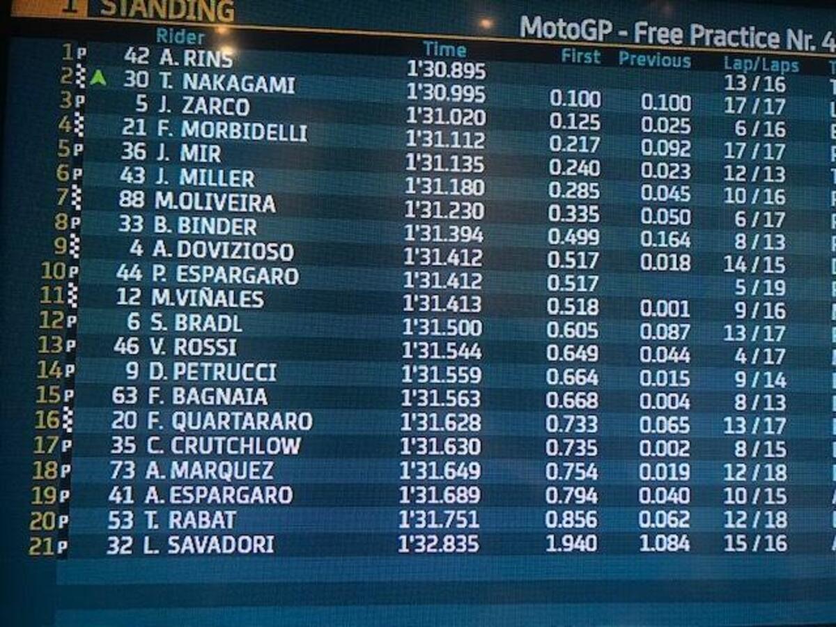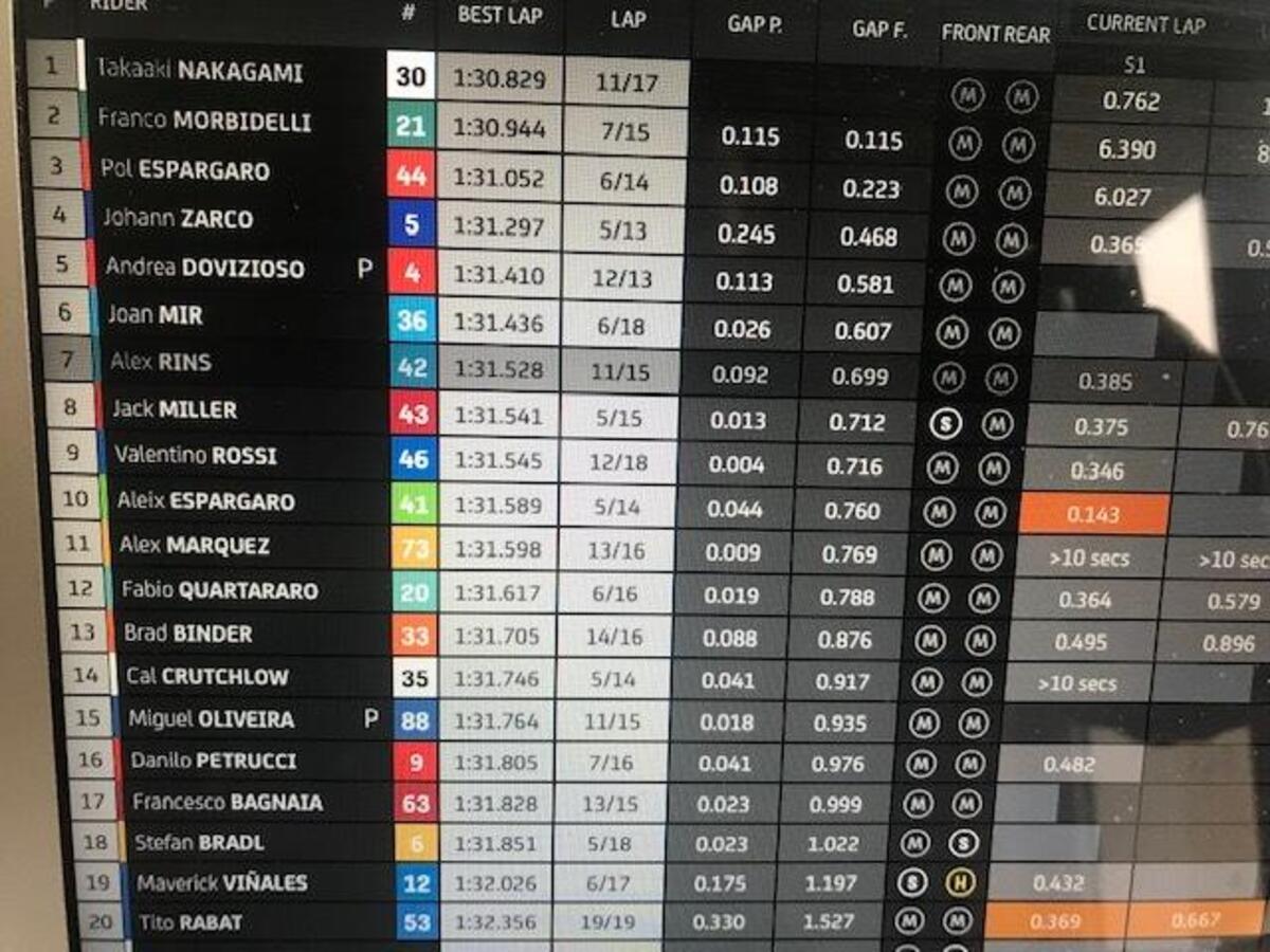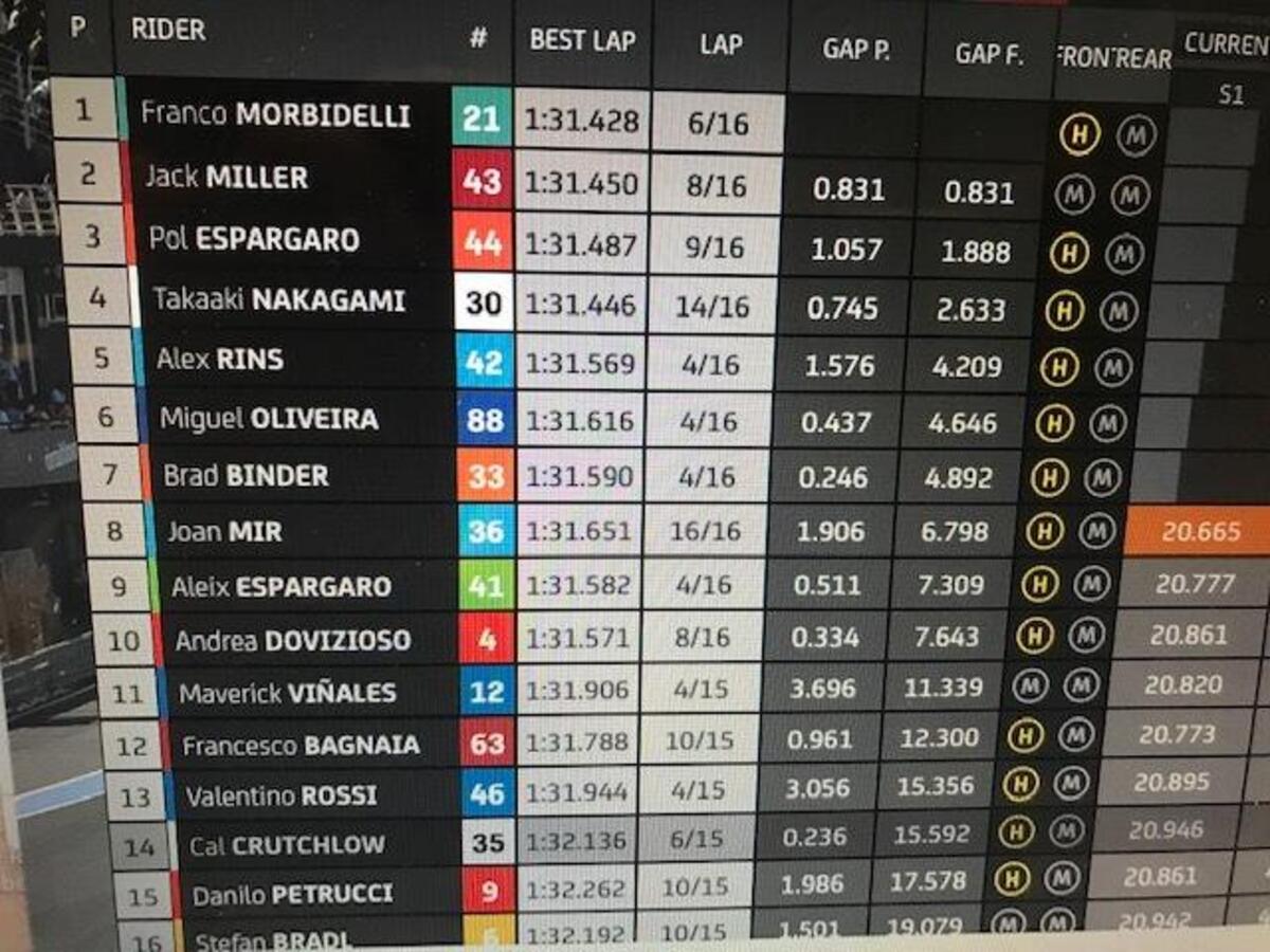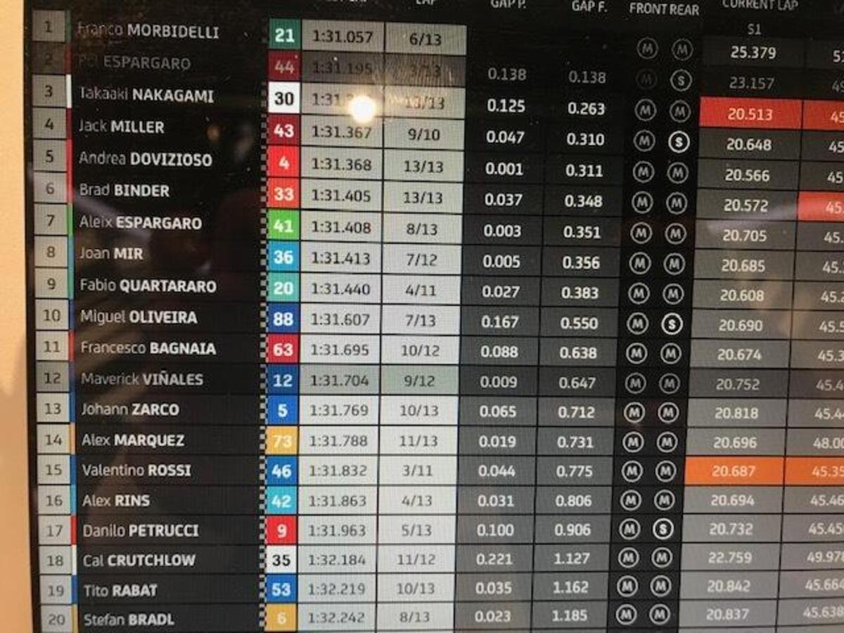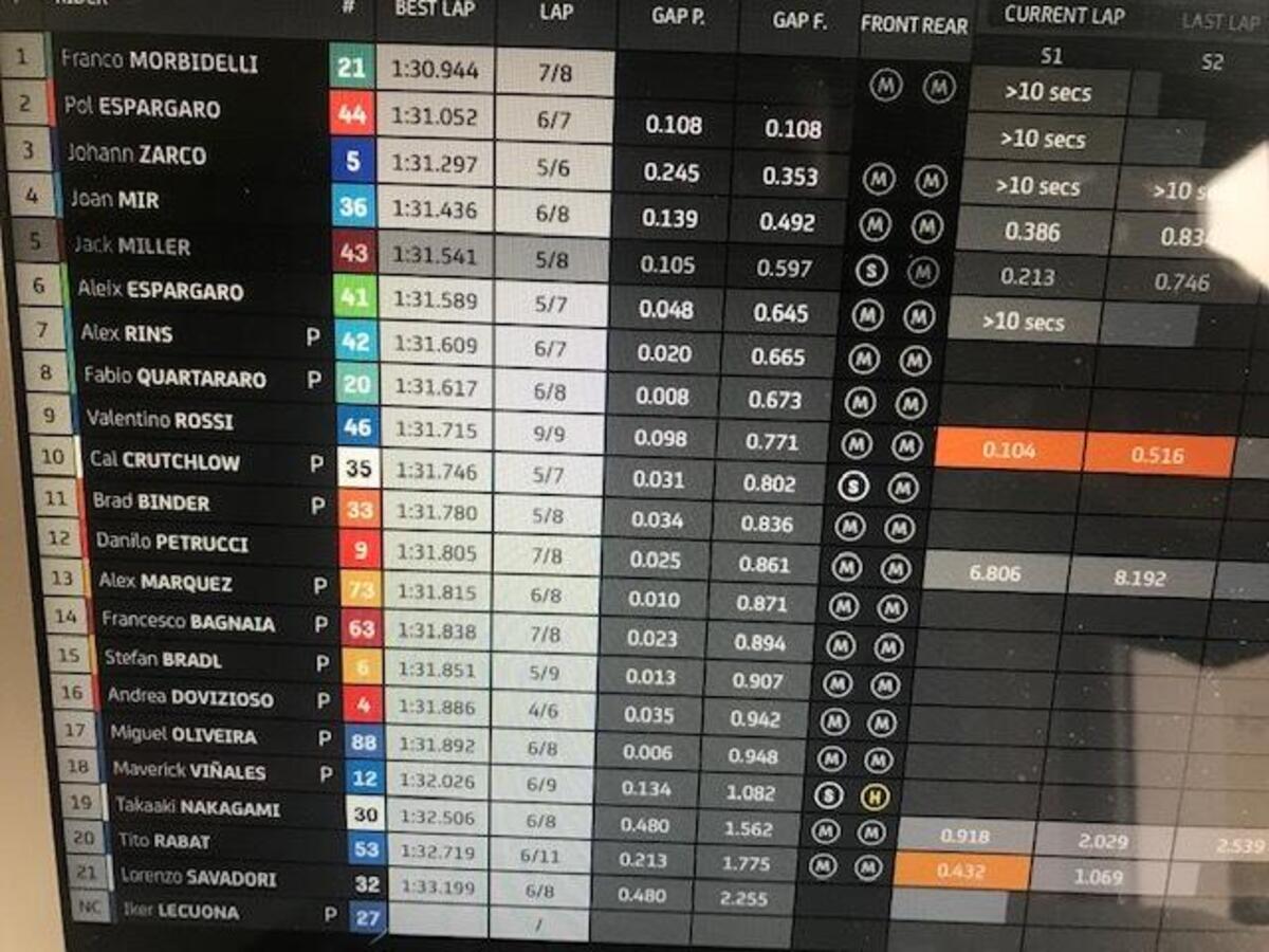 Dopo aver perso un paio di decimi per due giri, morbidelli torna a +0806