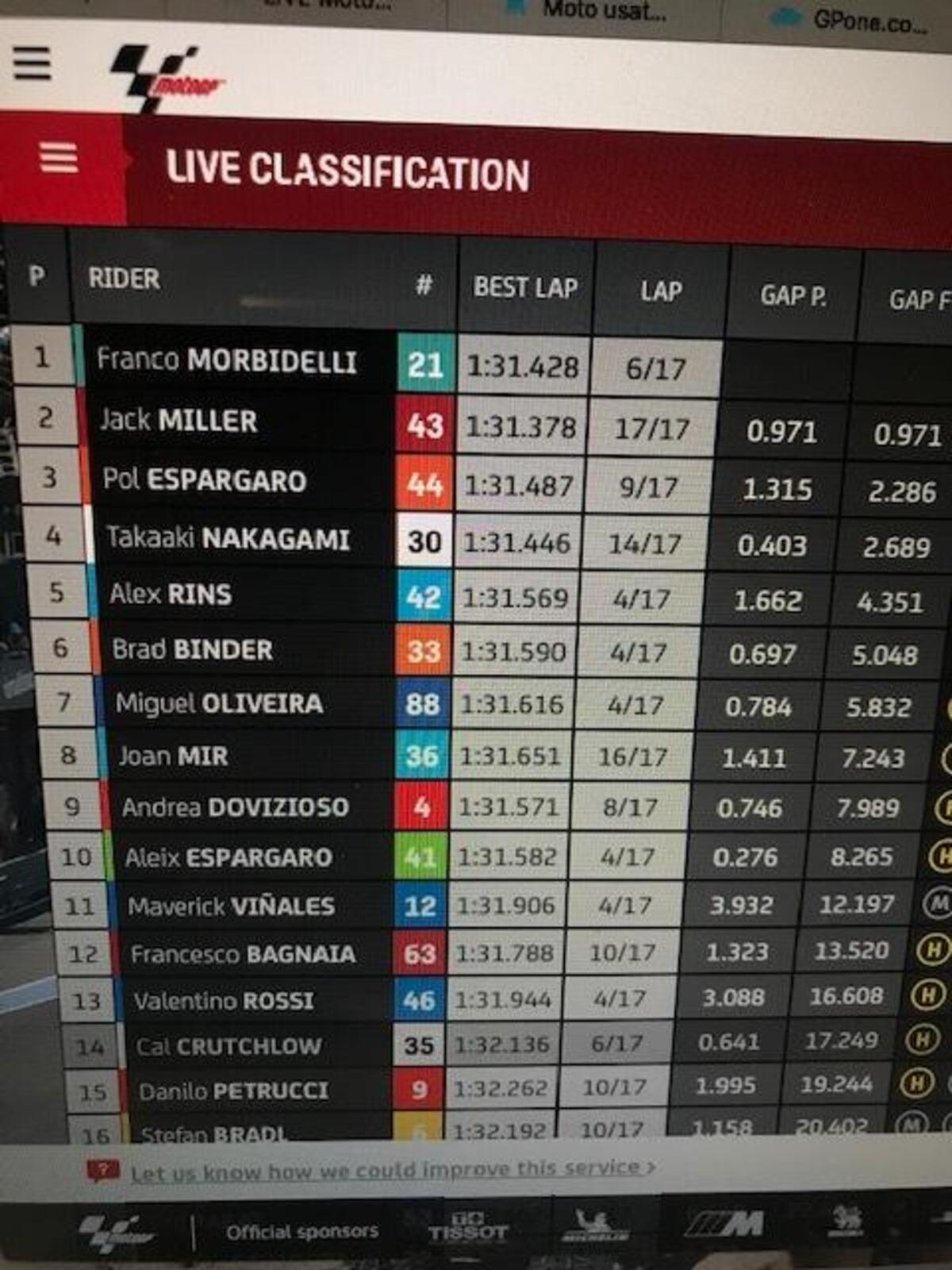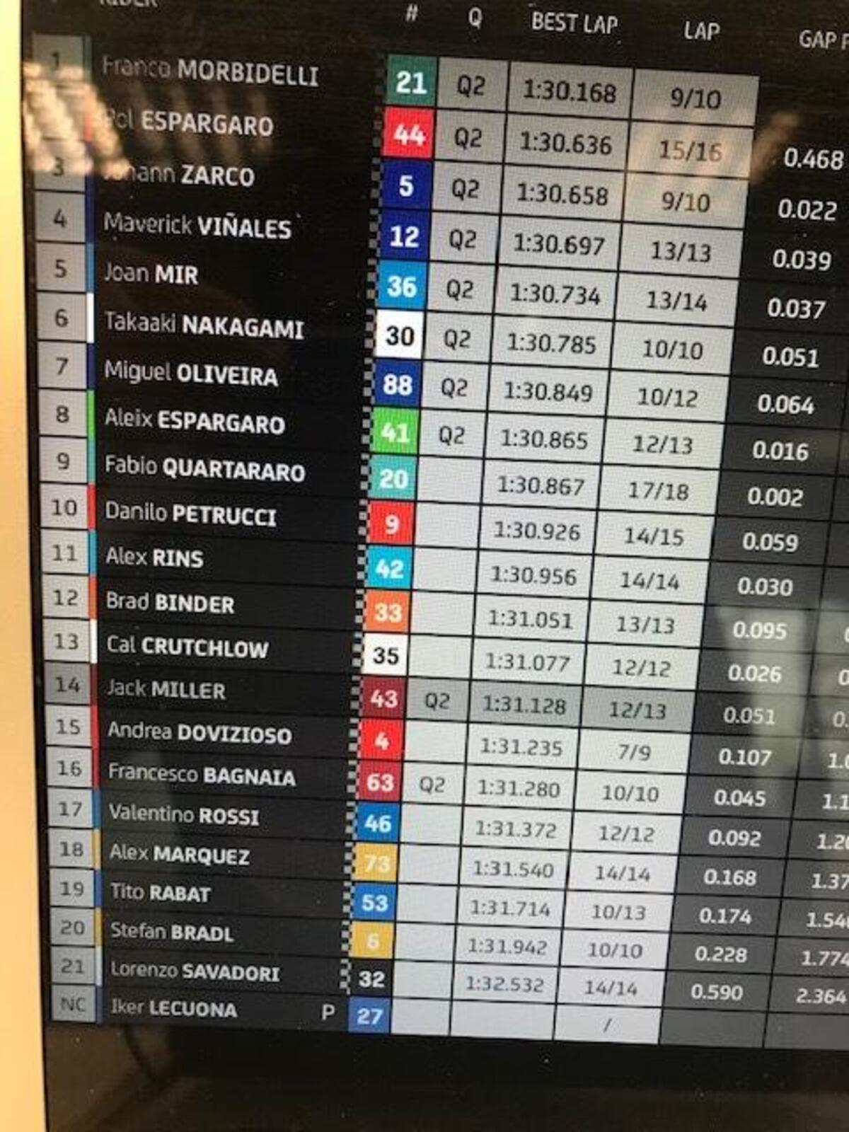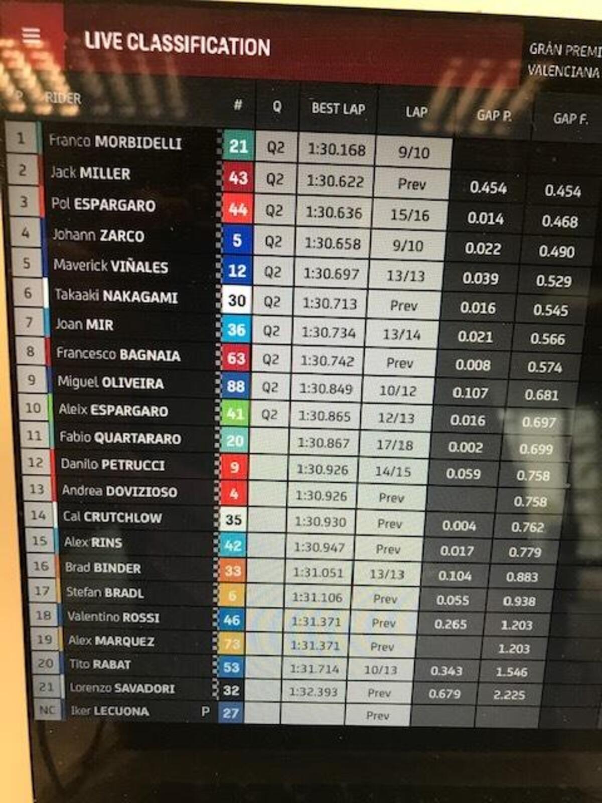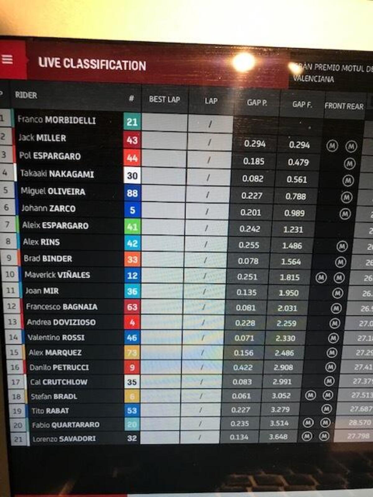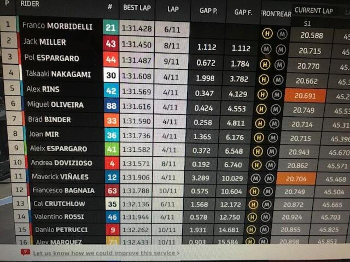 Dopo aver perso un paio di decimi per due giri, morbidelli torna a +0806