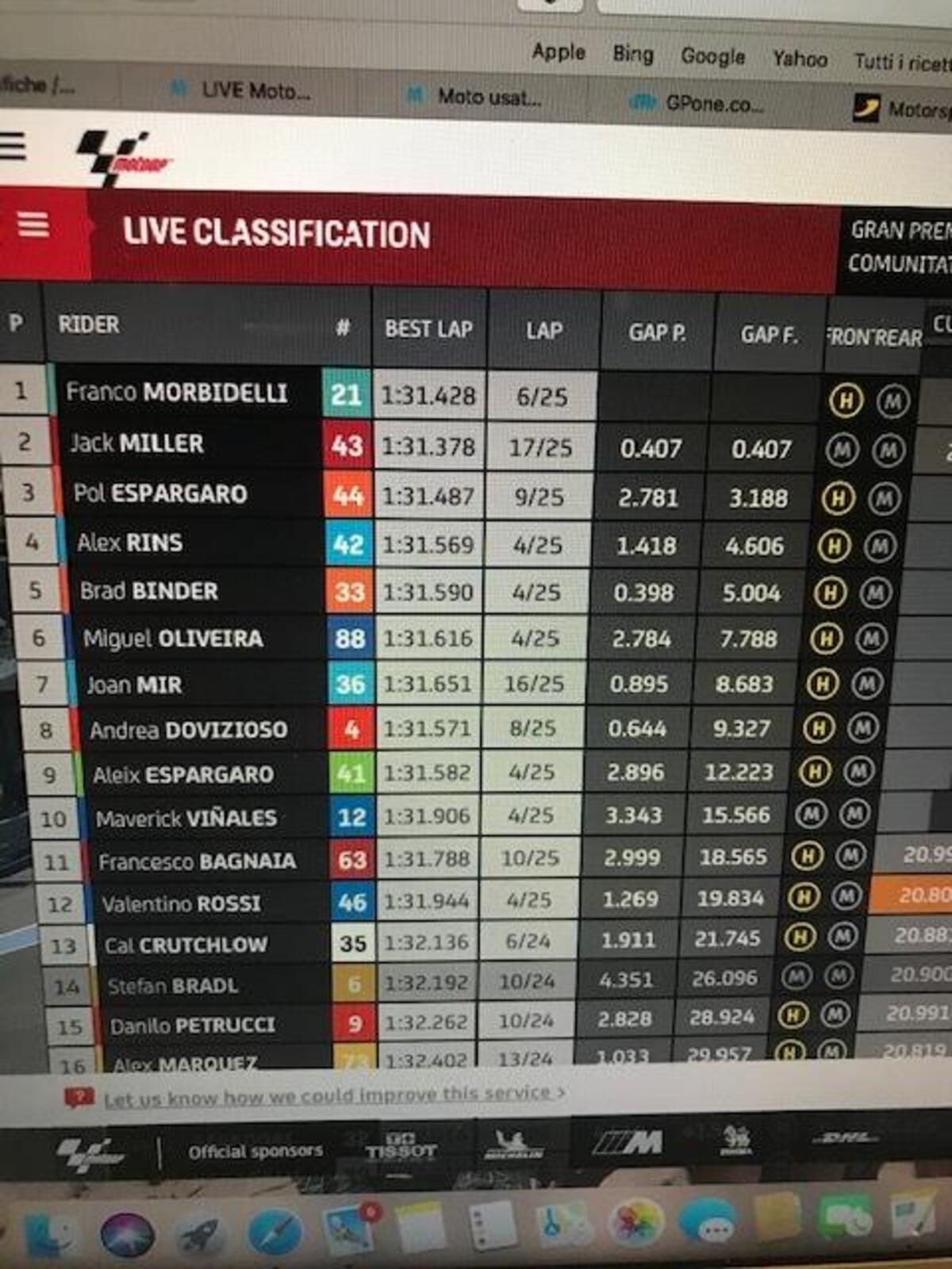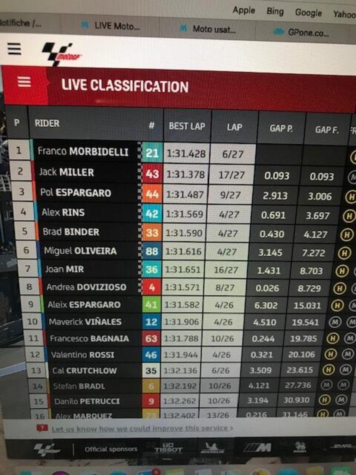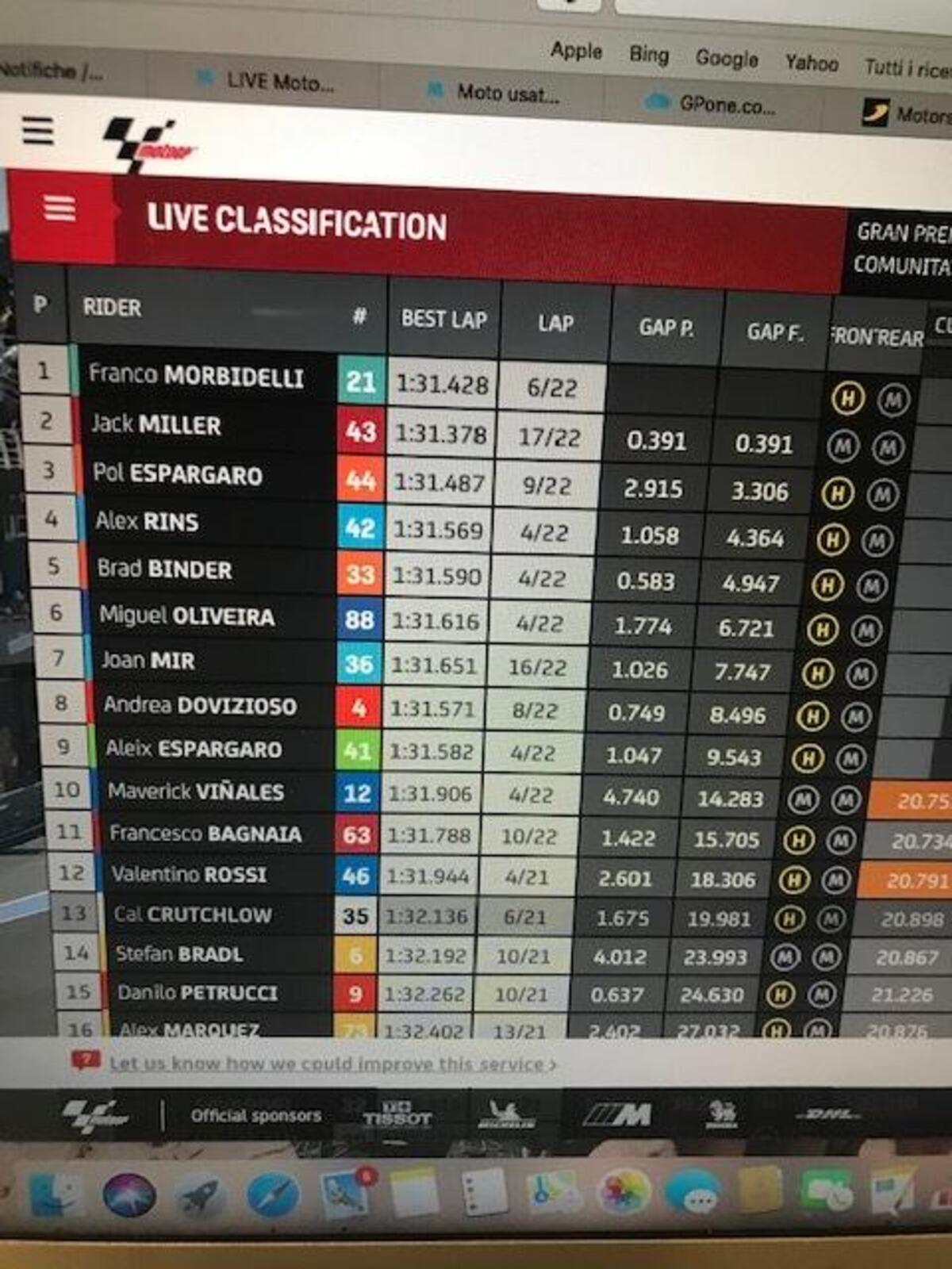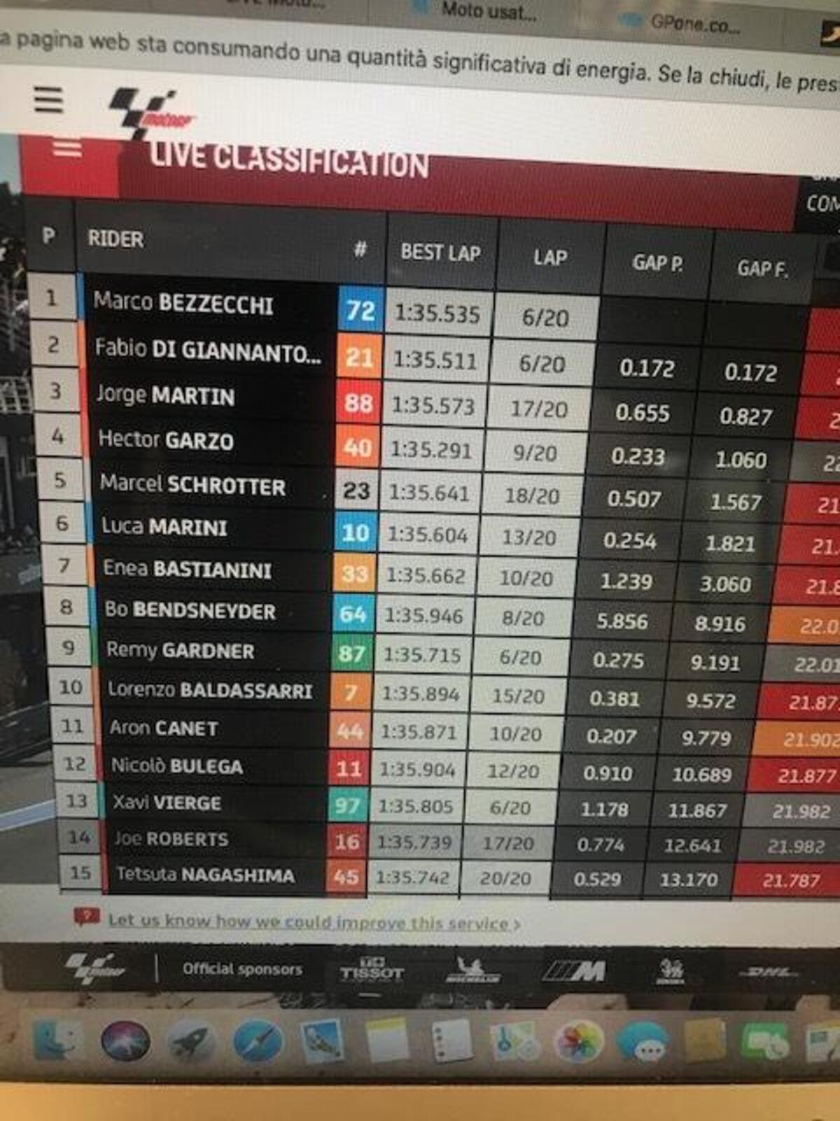 Dopo aver perso un paio di decimi per due giri, morbidelli torna a +0806