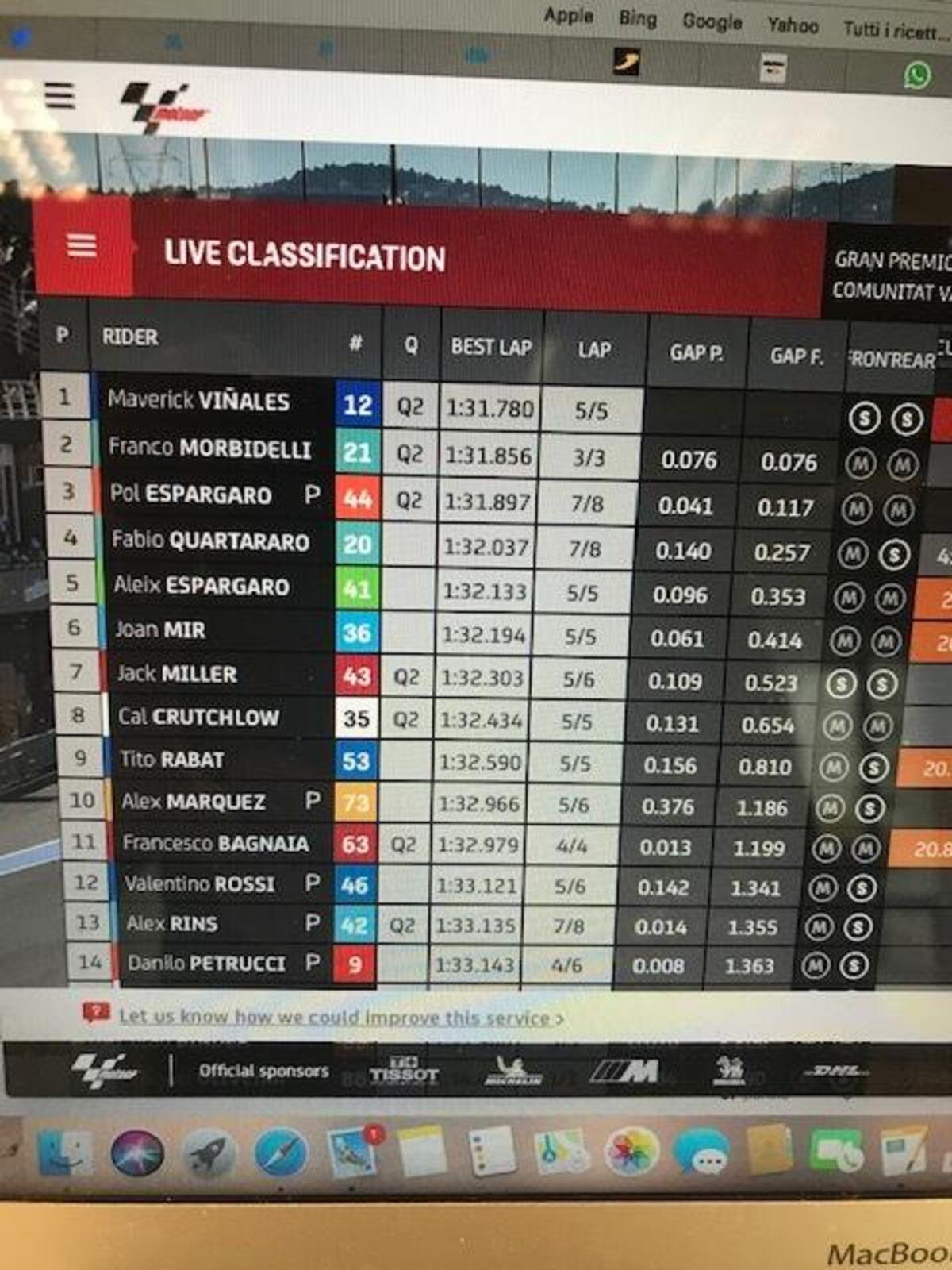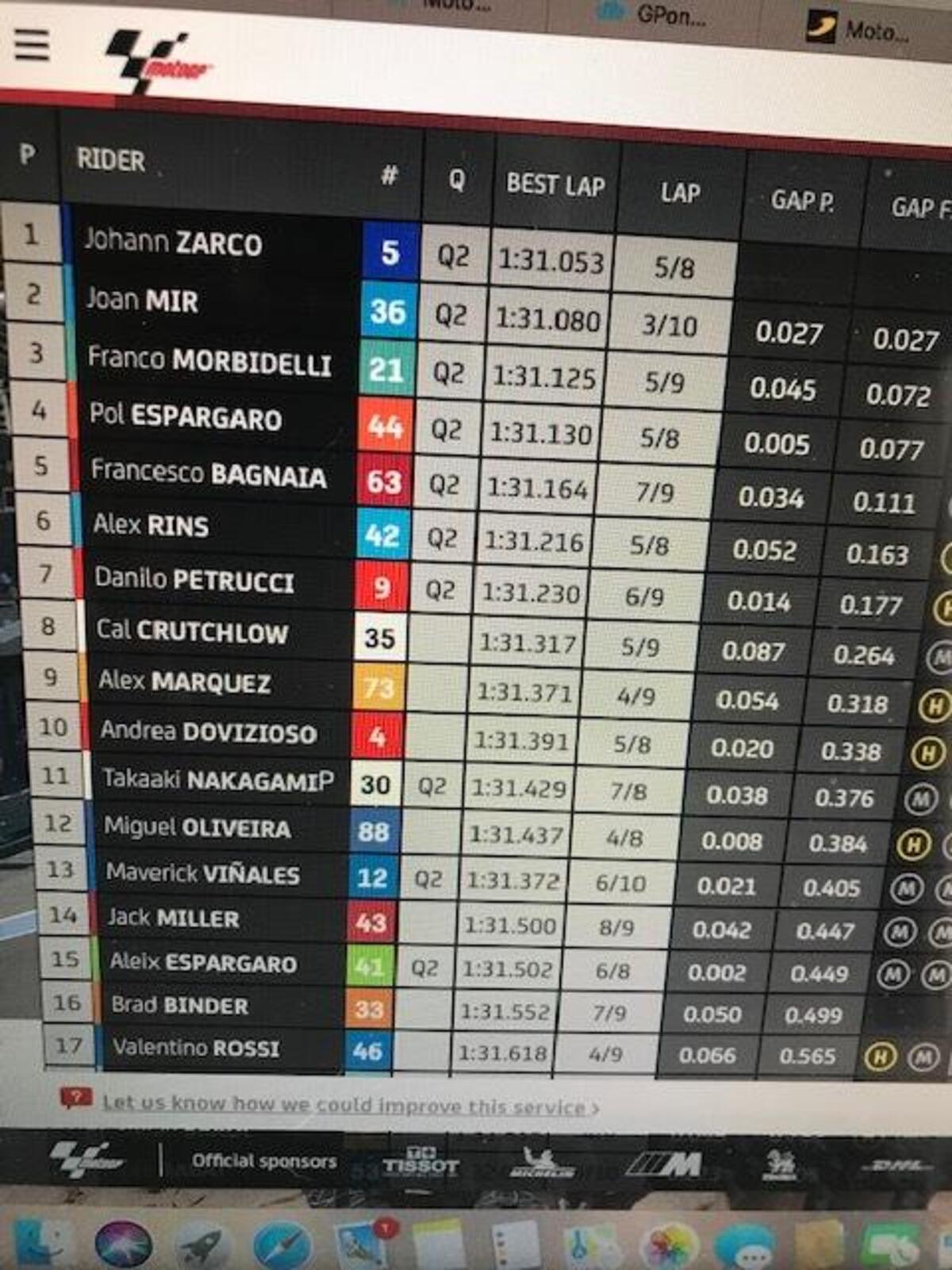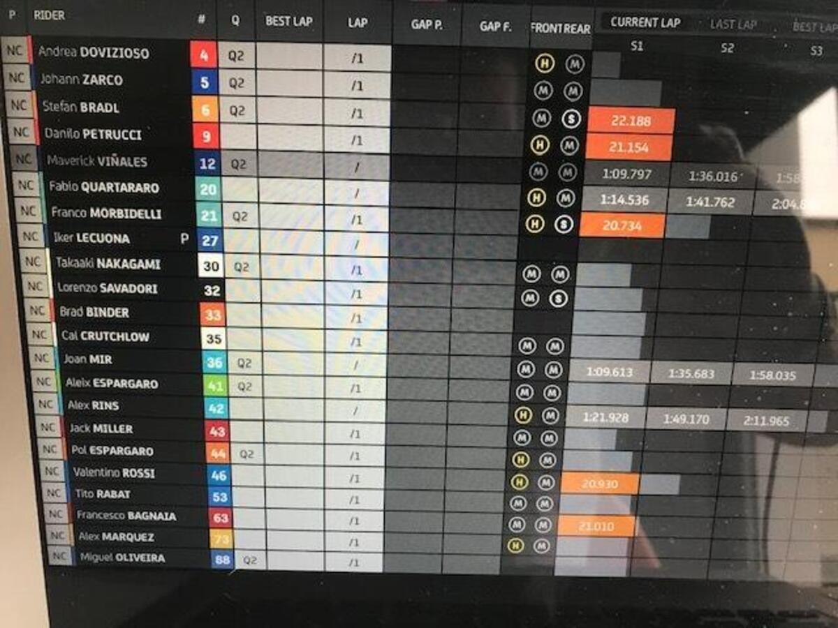 Dovizioso sta girando forte, adesso è decimo. 1’31”831 il sio ultimo giro