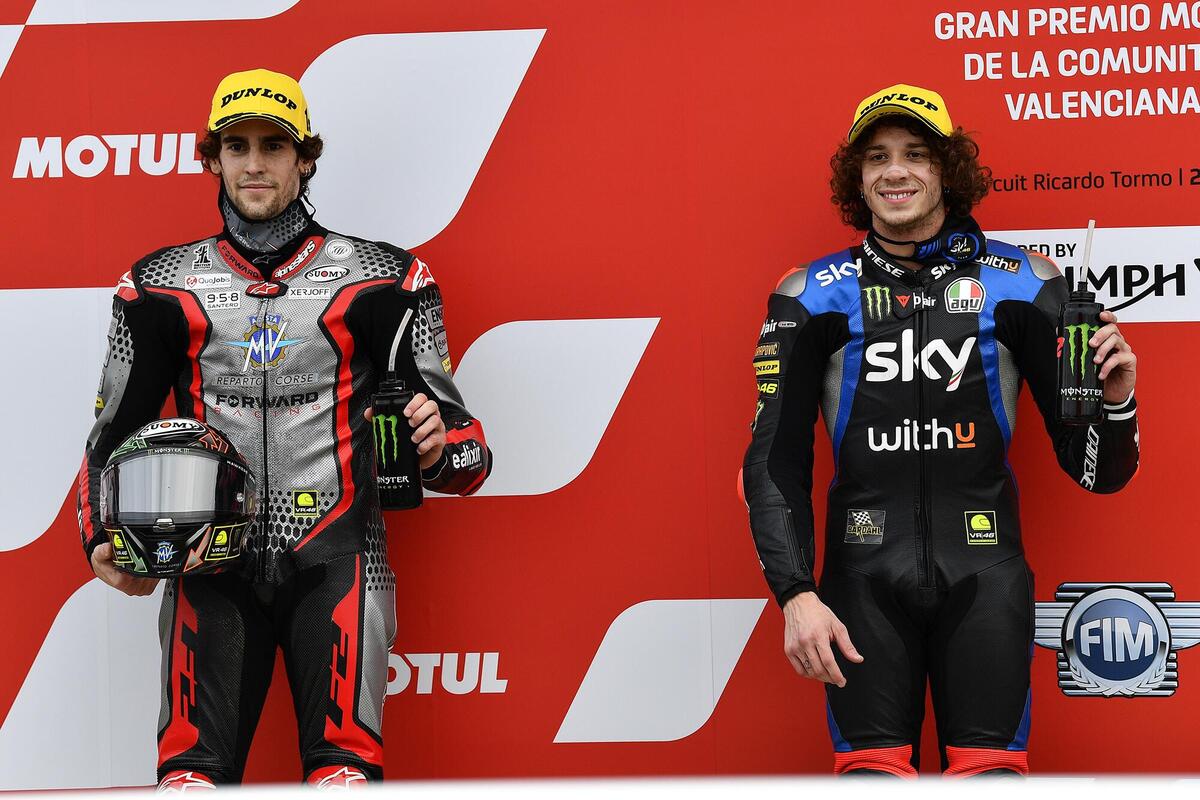 I gemelli Oncu, evidentemente, amano Valencia: qui, nel 2018, Can vinse al debutto nel motomondiale, oggi Deniz è secondo nelle FP1