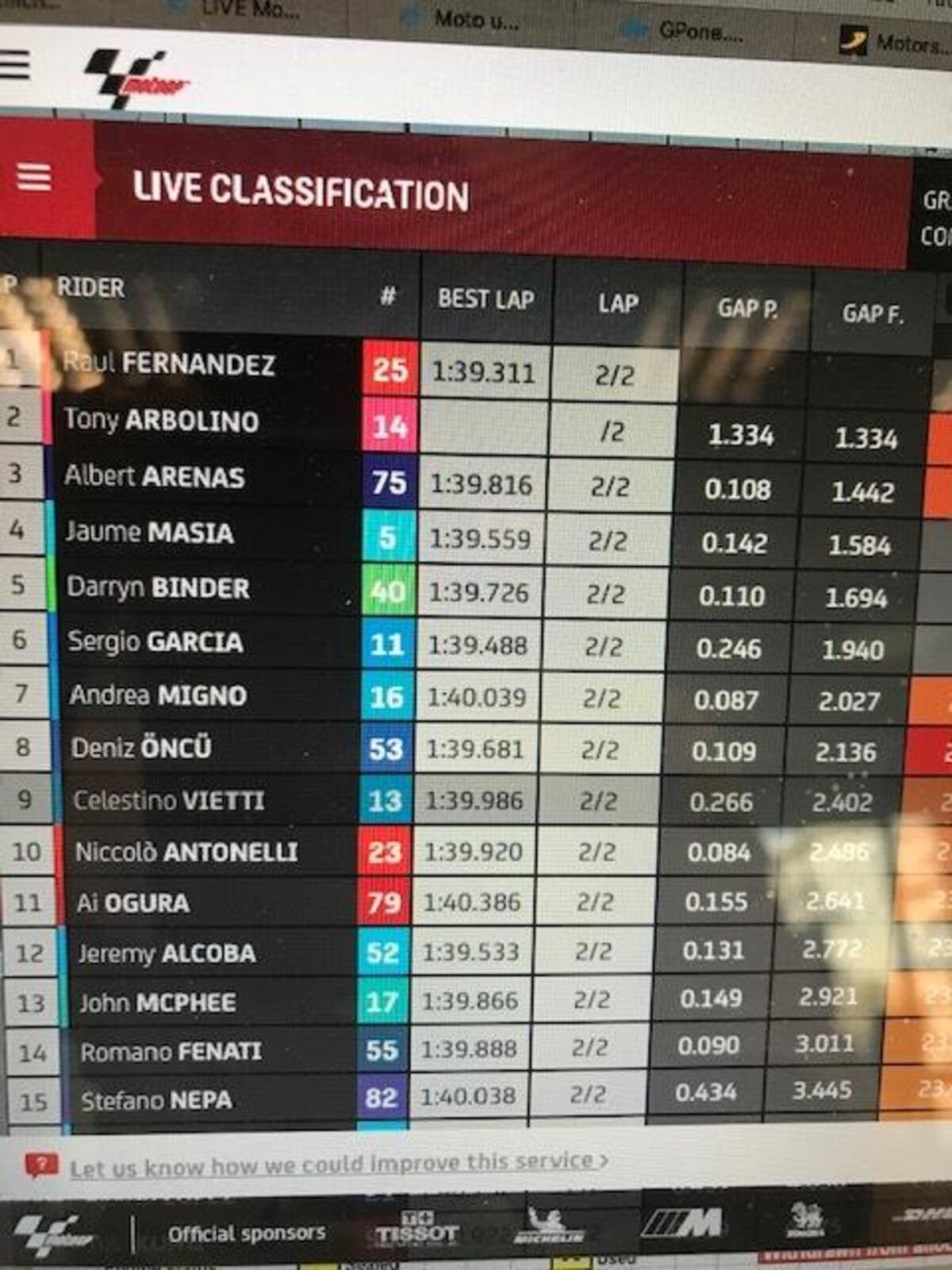 Finale FP1 moto2: