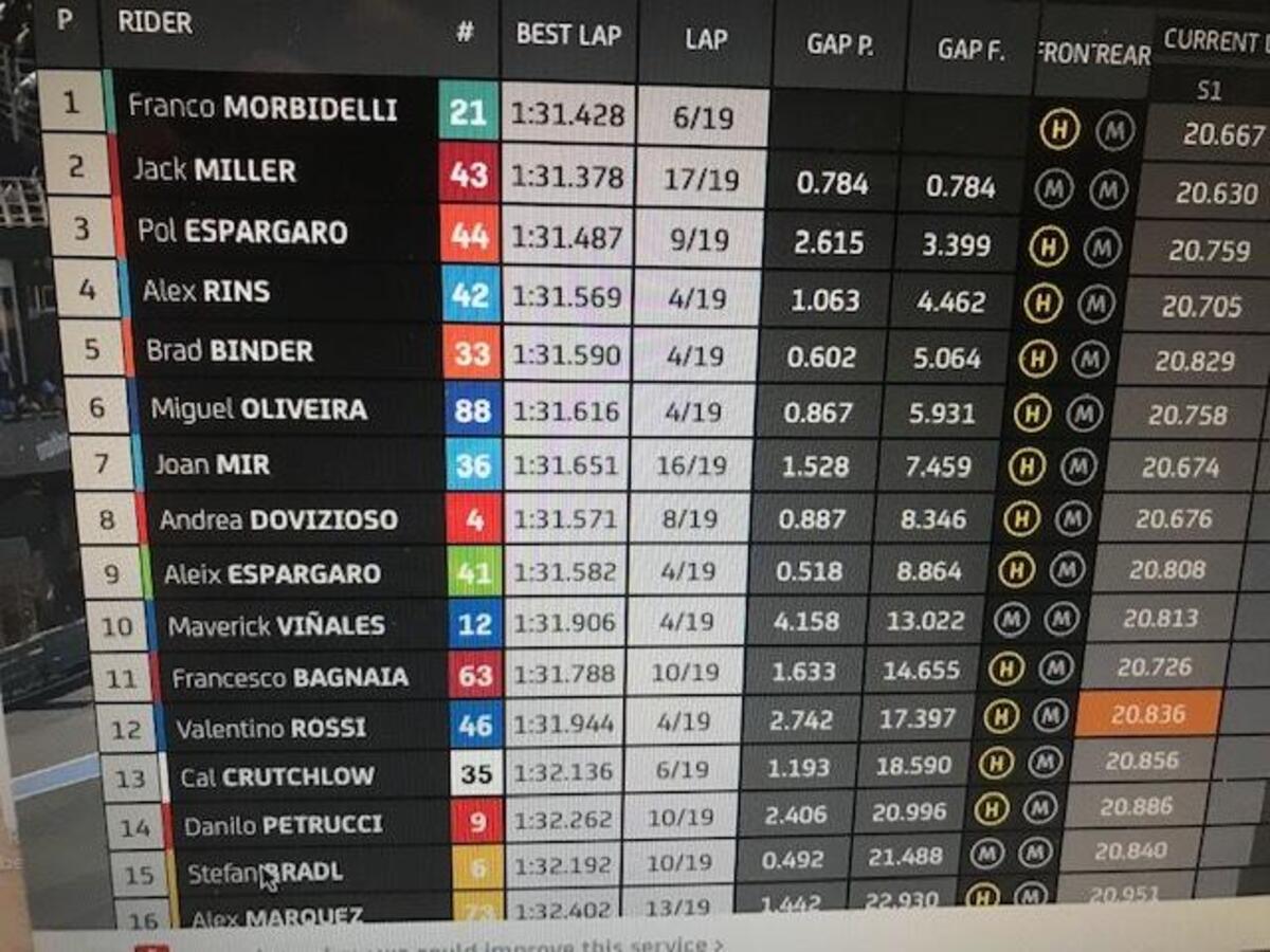 Morbidelli sta reagendo, ma è difficile. Rins si avvicina al podio, meno di un secondo
