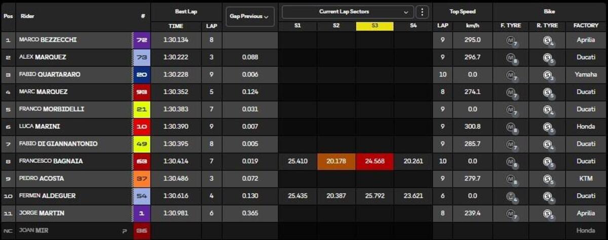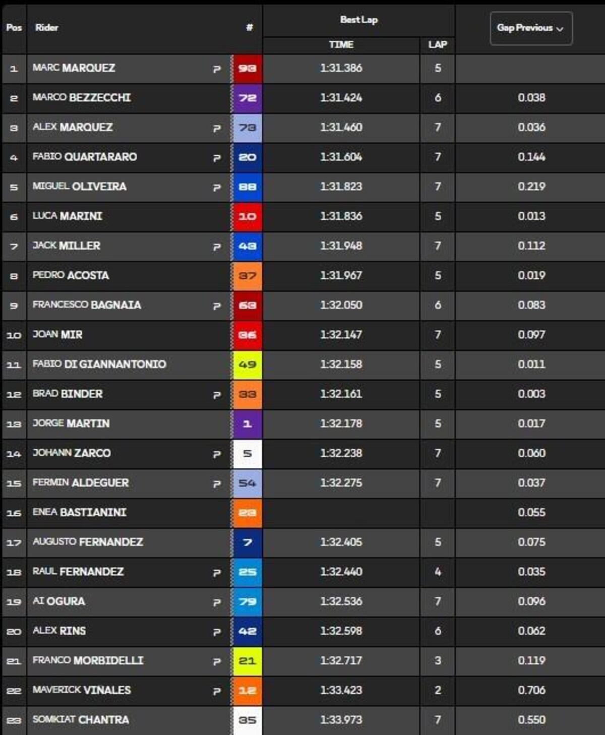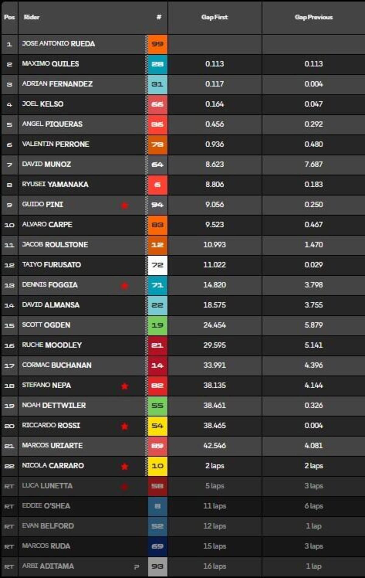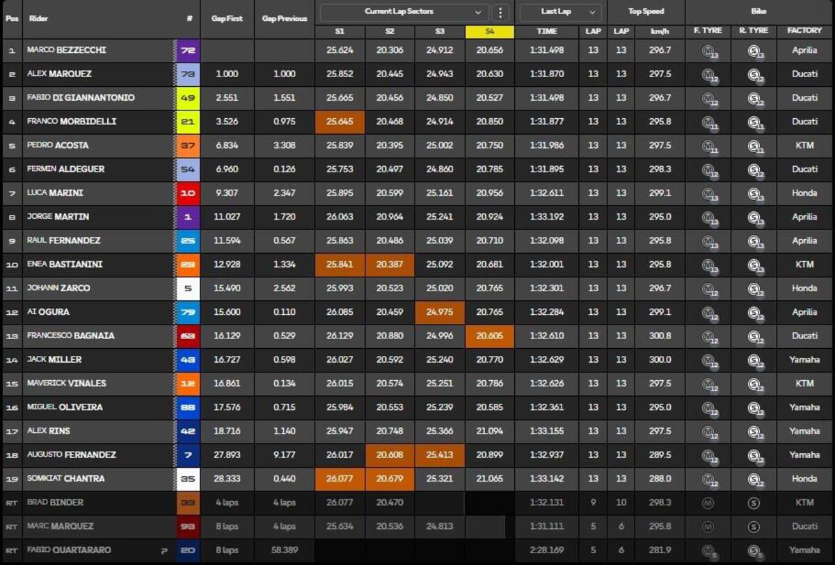 una gara amabile per Marc. Non è un caso che tutti i piloti passati Gresini