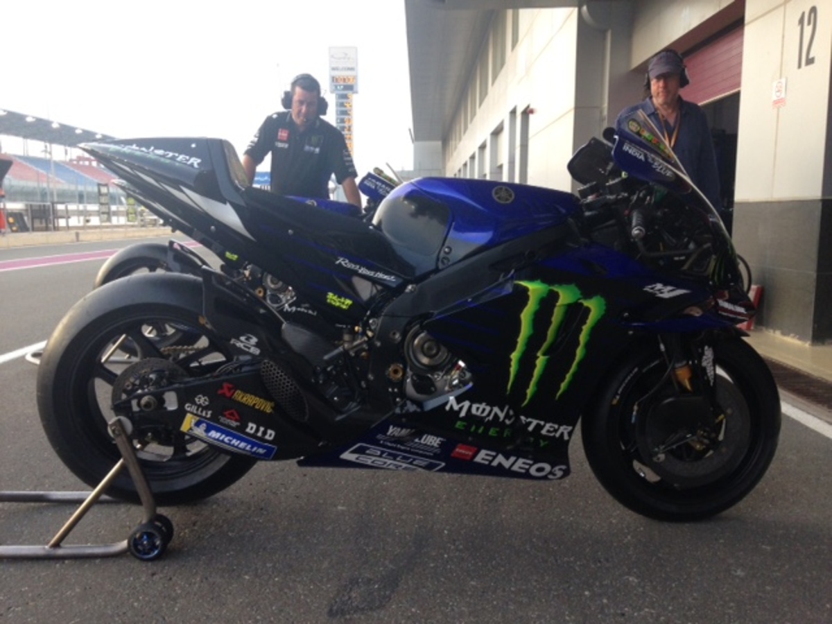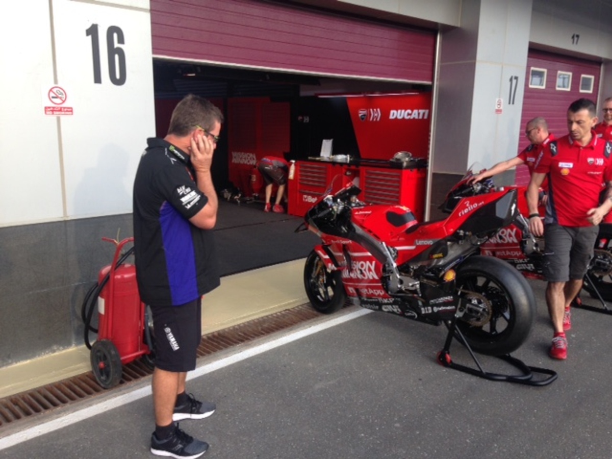 I meccanici Yamaha di Rossi osservano la ducati mentre viene scaldata