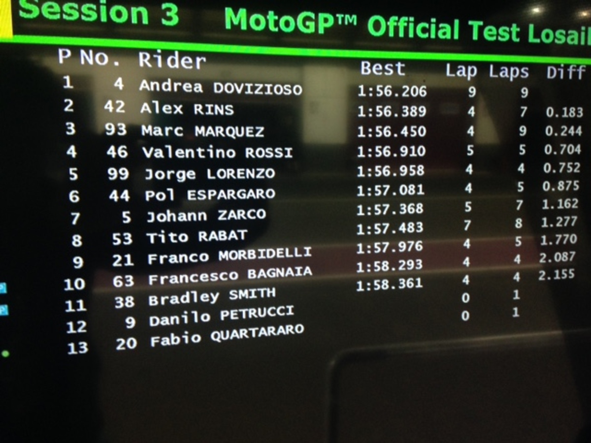 6) Lorenzo migliora uscita dopo uscita: non ha ancora perfettamente in mano questa moto, ma la sua crescita è evidente;