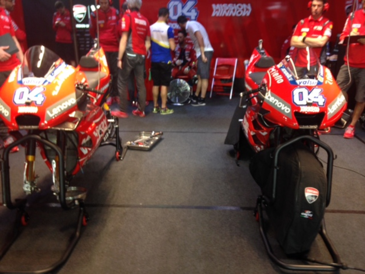 I piloti ducati entreranno in pista attorno alle 1730 (1530 in Italia). Proveranno ancora il nuovo telaio, anche se la scelta sembra orientata sul "vecchio"