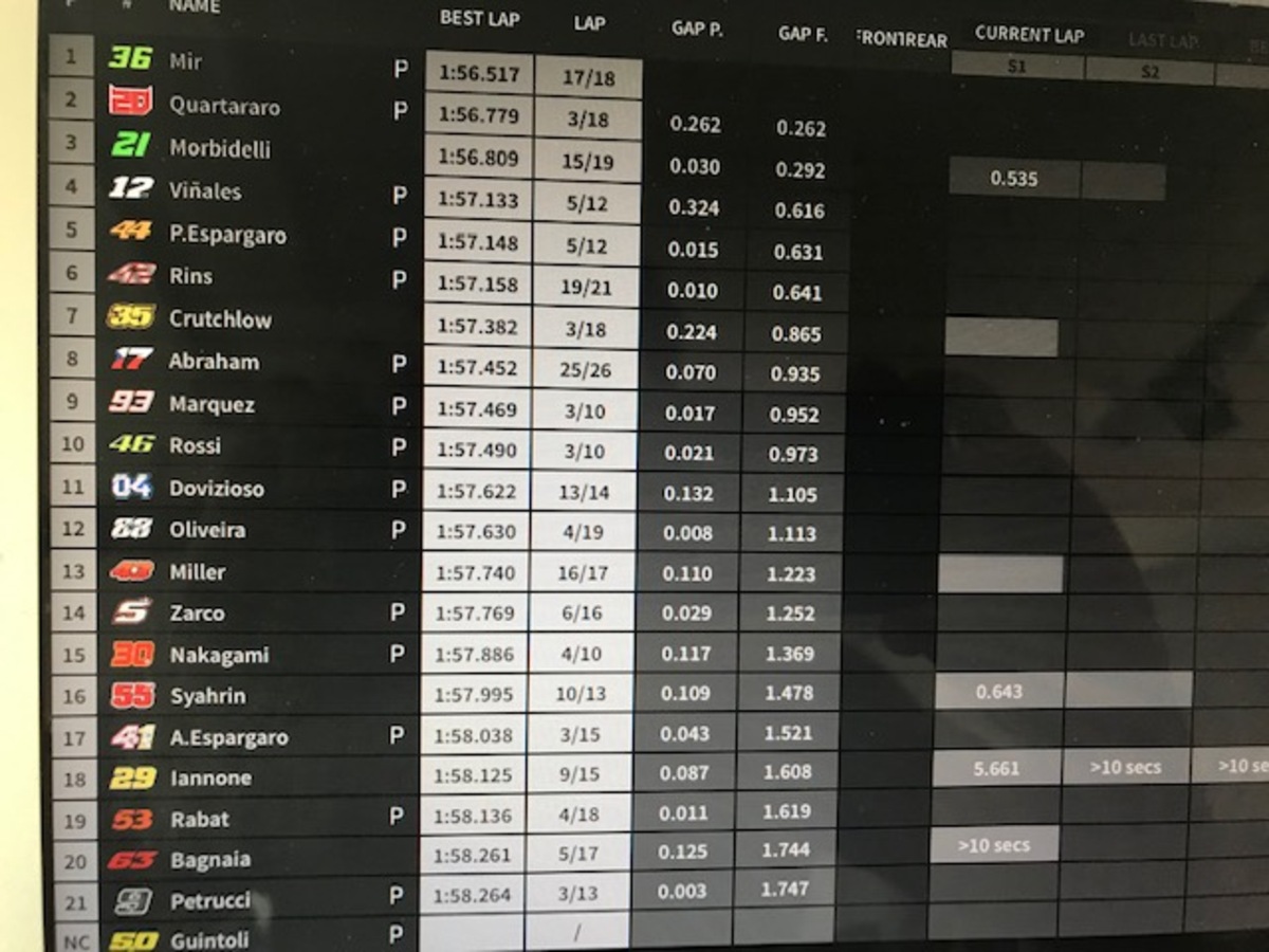 Mir è caduto alla 1, c’è l’ambulanza in pista, ma pare che il pilota sia ok