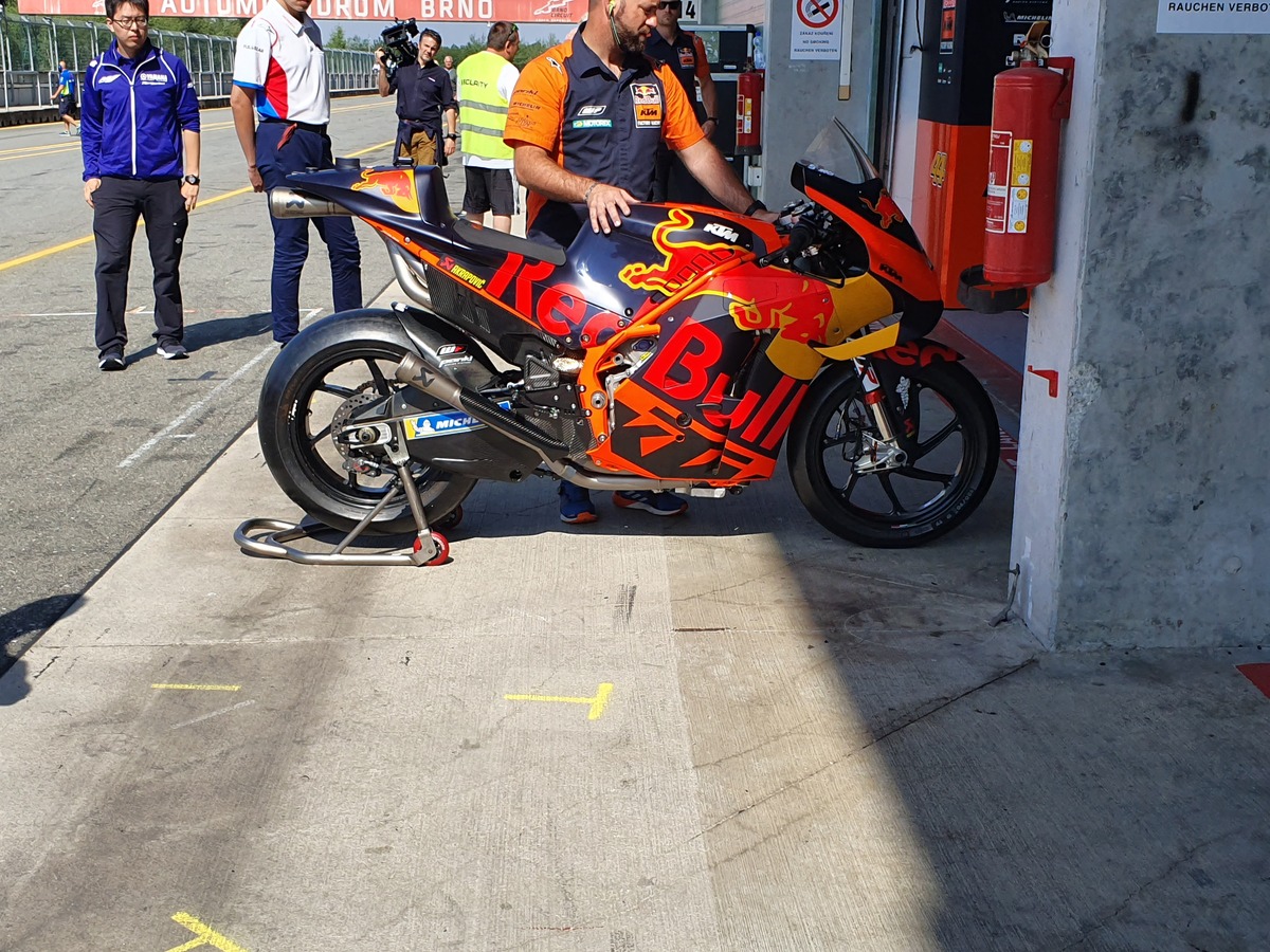 La KTM ufficiale di Pol Espargaro, dotata del forcellone in carbonio e delle ali stile Yamaha.