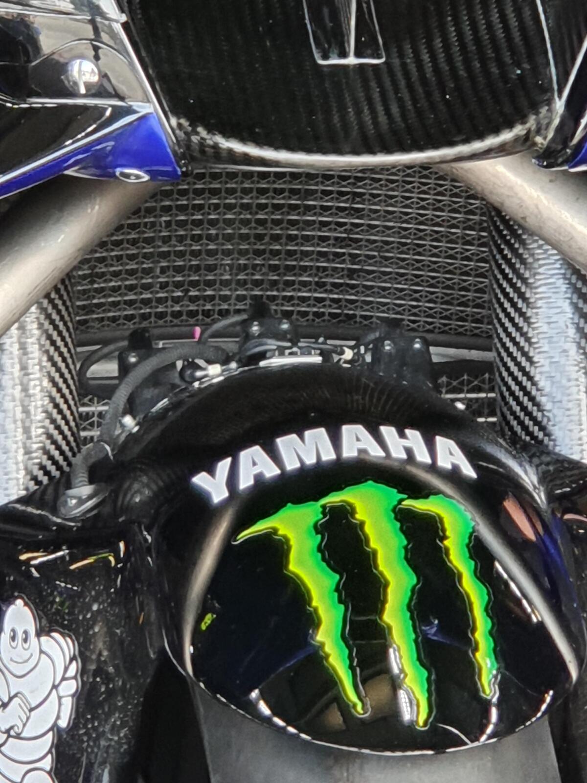 Chi è sensibile alla qualità tecnica non può che rimanere colpito dalla cura costruttiva di tanti particolari delle MotoGP attuali: questo è ancora un dettaglio del parafango anteriore della M1 smontato.