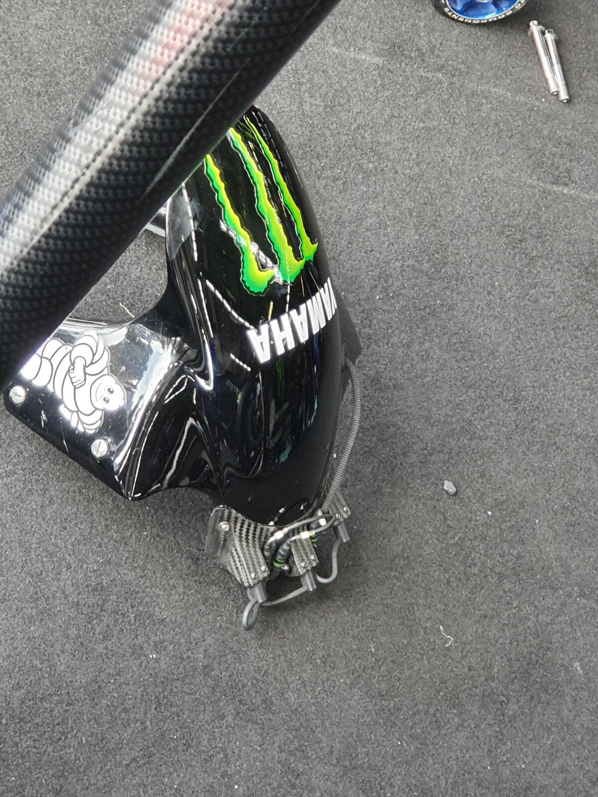 Particolare del parafango anteriore della M1 ufficiale; si nota il gruppo dei tre sensori ad infrarossi per tenere monitorata la temperatura della gomma.