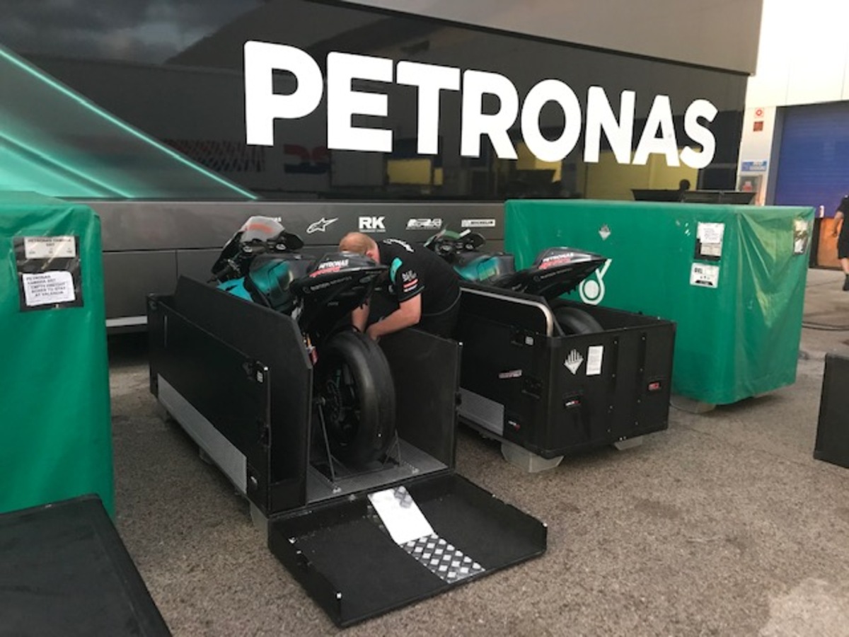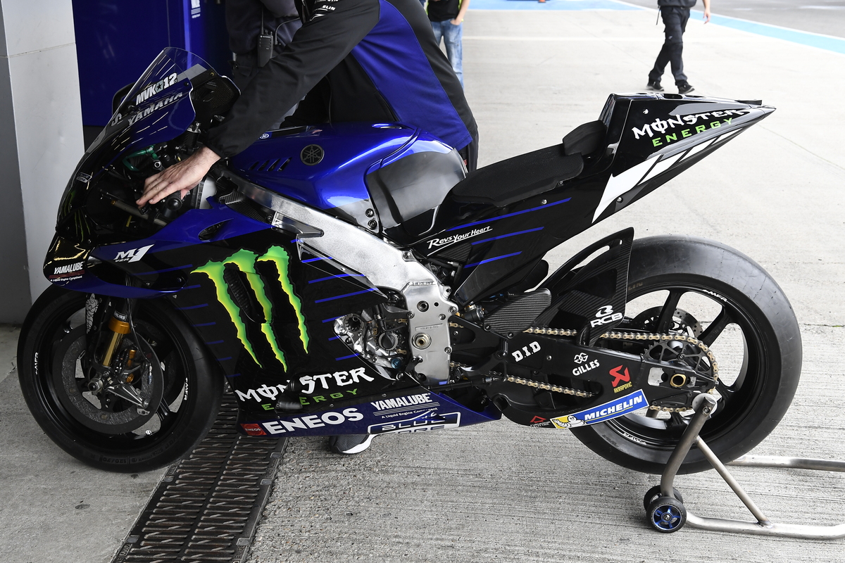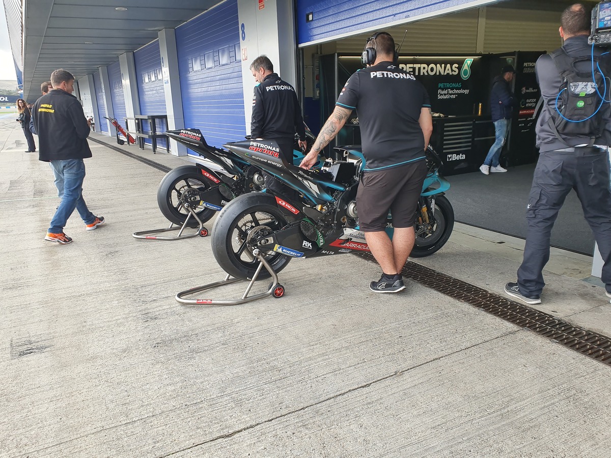 Nulla di visibilmente nuovo per le Yamaha del team Petronas. Quartararo e Morbidelli sono impegnati a provare il nuovo motore.
