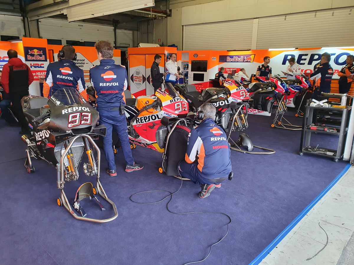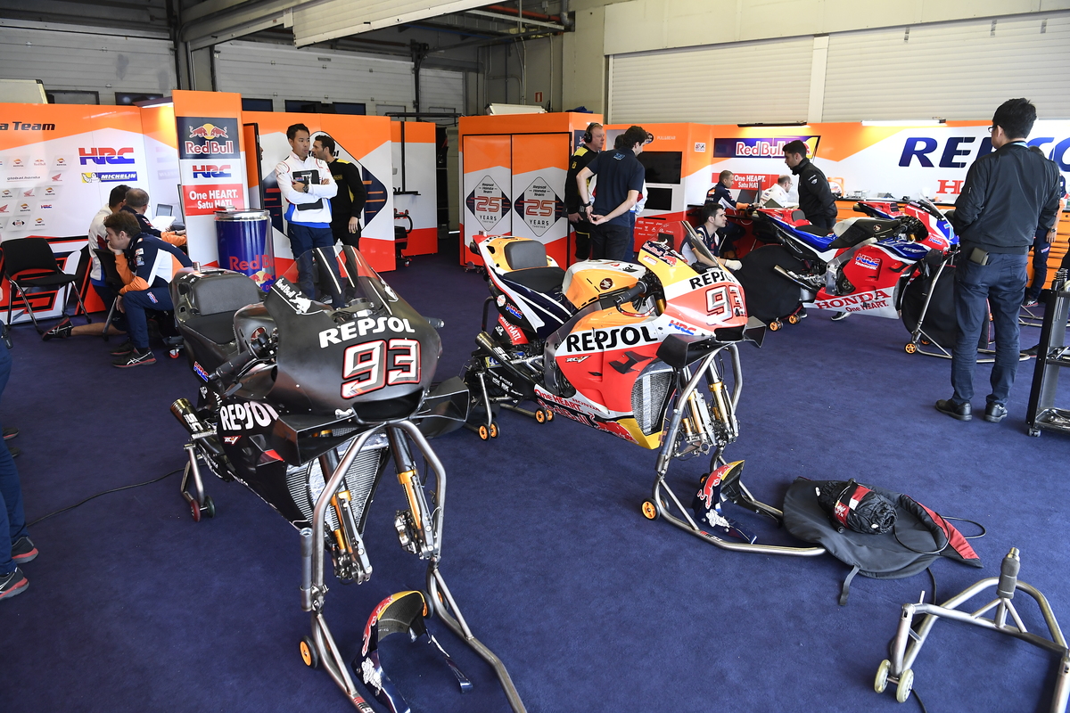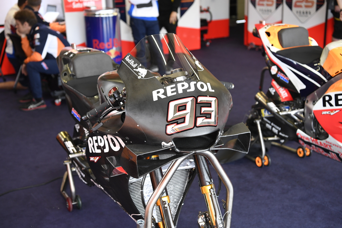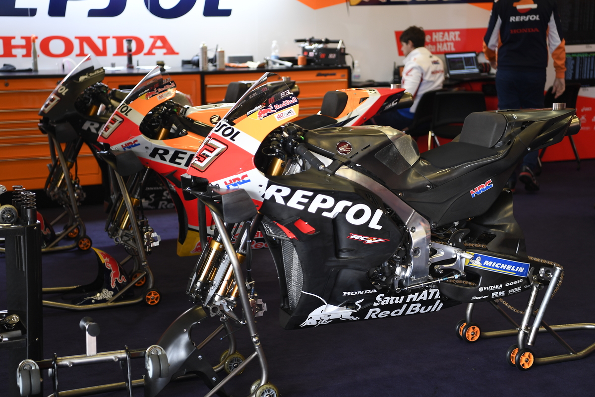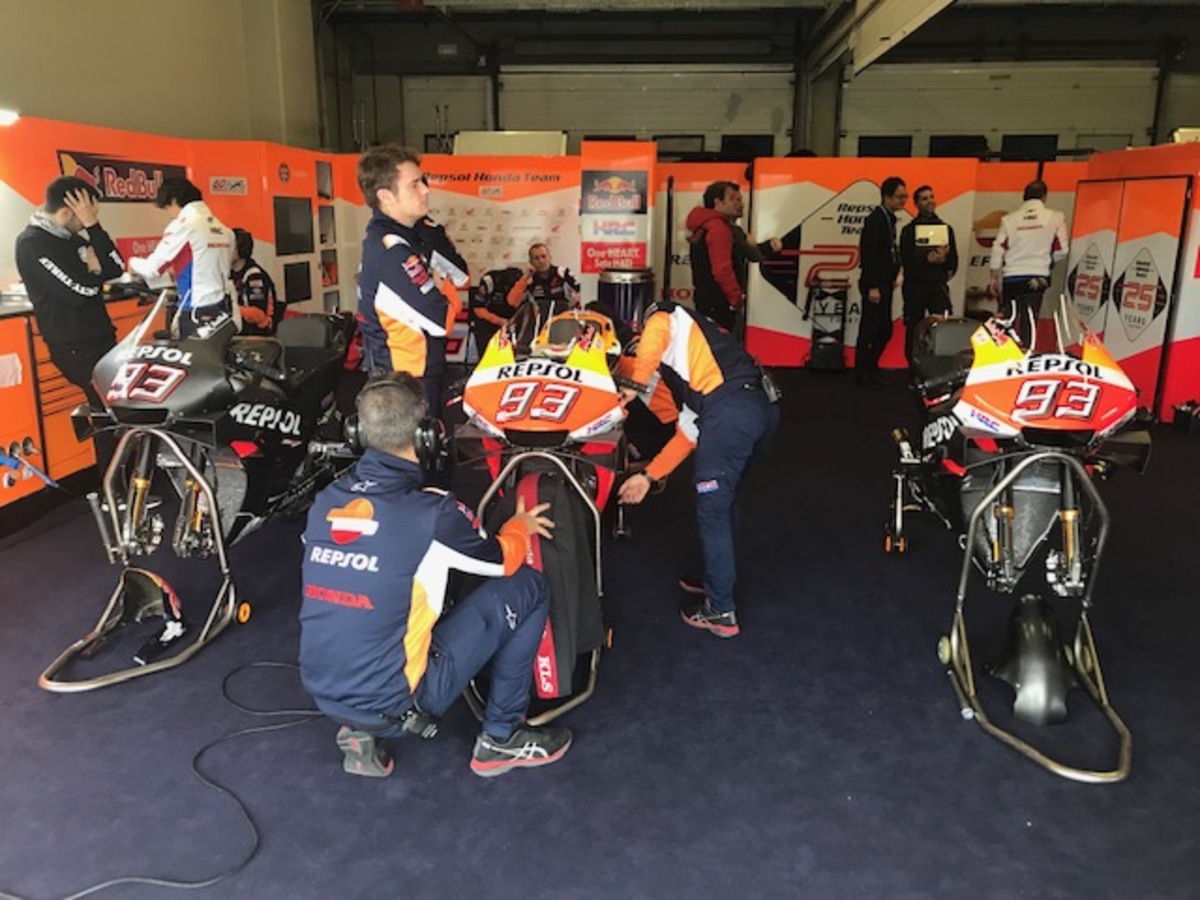 Inizia il lavoro anche al box HRC. 5 moto per i Marquez, 3 per Marc e 2 per il fratello.