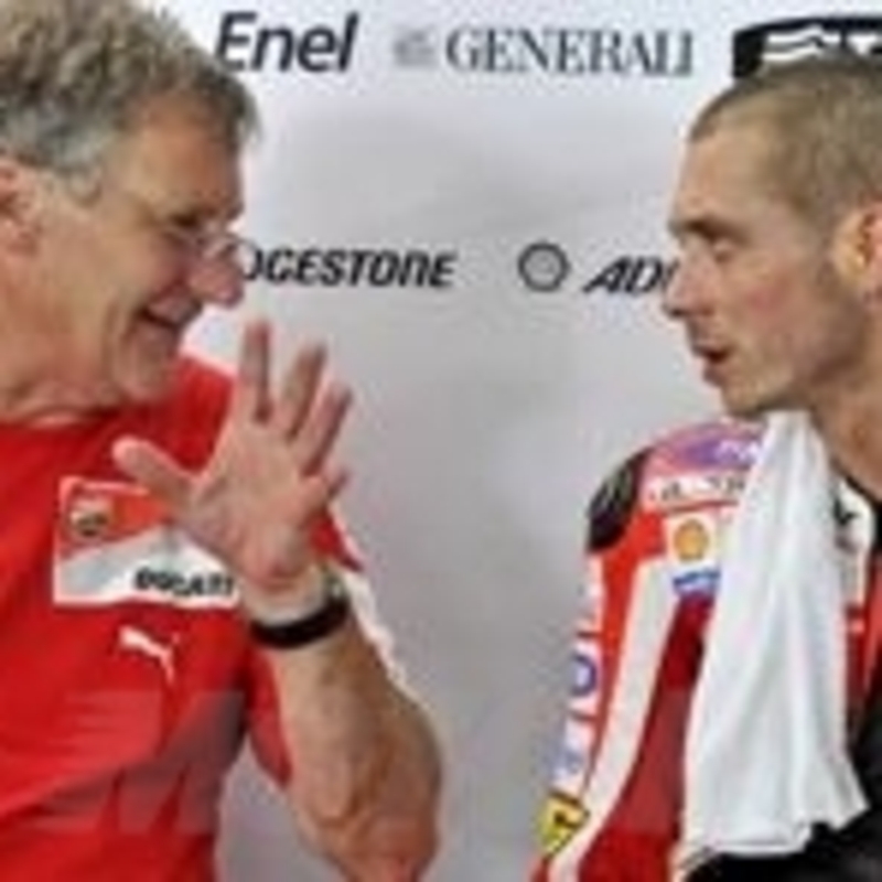 Continua a ripetere che la "Ducati non curva, è difficilissima in inserimento e percorrenza". Al di là dell'età, non si è risparmiato, ma non si vede una via di uscita.
