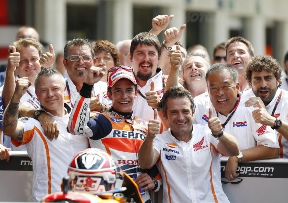 Il ritiro di Stoner, nel frattempo, gli ha liberato un posto nel team interno Honda Repsol. Il regolamento non gli permetterebbe di esordire in un team ufficiale, ma un po’ perché la regola ha fatto più danni che altro, un po’ perché Marquez è uno speciale, con un colpo di mano si abolisce la Rookie Rule e la sella più ambita del Mondiale è sua. Già dai test di Valencia all’indomani di fine stagione 2012 Marc va fortissimo, e alla riapertura delle ostilità in Malesia il distacco dal leader diminuisce appuntamento dopo appuntamento. L’atmosfera idilliaca che regna nel team Repsol nelle occasioni promozionali è destinata ad avere vita breve.