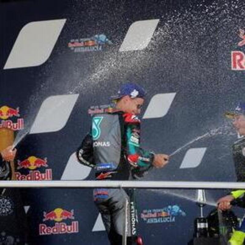 Marquez out, super Quartararo bissa Jerez e stravince davanti a Vinales. Rossi terzo, podio tutto Yamaha. Grandissimo Bagnaia: era ottimo secondo, motore Ducati out e gran brutta giornata per le rosse, con Dovi solo sesto. Ma anche Morbidelli appiedato dal motore Yamaha.