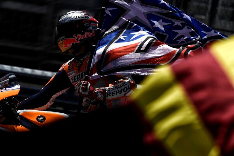 Marquez è stufo di accontentarsi di un piazzamento e dopo tre GP senza vittoria, torna ad attaccare, su una pista a lui favorevole e che, da quest’anno, gli ha intitolato una curva, la 10. La gara è bella ed esaltante, la sfida con Dovizioso avvincente e incerta, ma al penultimo giro Marquez prende un minimo margine che porta fino al traguardo, impedendo qualsiasi replica al rivale della Ducati. Un successo costruito anche in partenza, quando Marc “stoppa” in qualche modo Lorenzo, che cade alla prima curva, secondo Jorge proprio per colpa del futuro compagno di squadra.