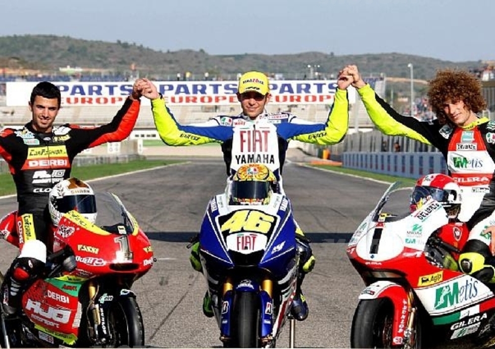 La MotoGP scende in pista dopo le due straordinarie prestazioni, nella 125 e nella 250, di Simone Corsi e di Marco Simoncelli. Entrambi giungono primi sul traguardo, per Marco e la Gilera è davvero il modo migliore per festeggiare la vittoria nel Motomondiale Classe 250.